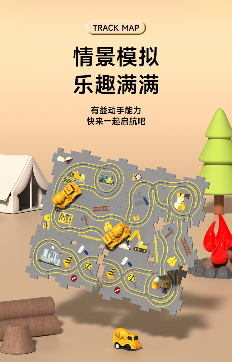 어린이 퍼즐 전기 직소 퍼즐 레일 자동차 DIY 도시지도 장면 건물 소년 장난감 도매