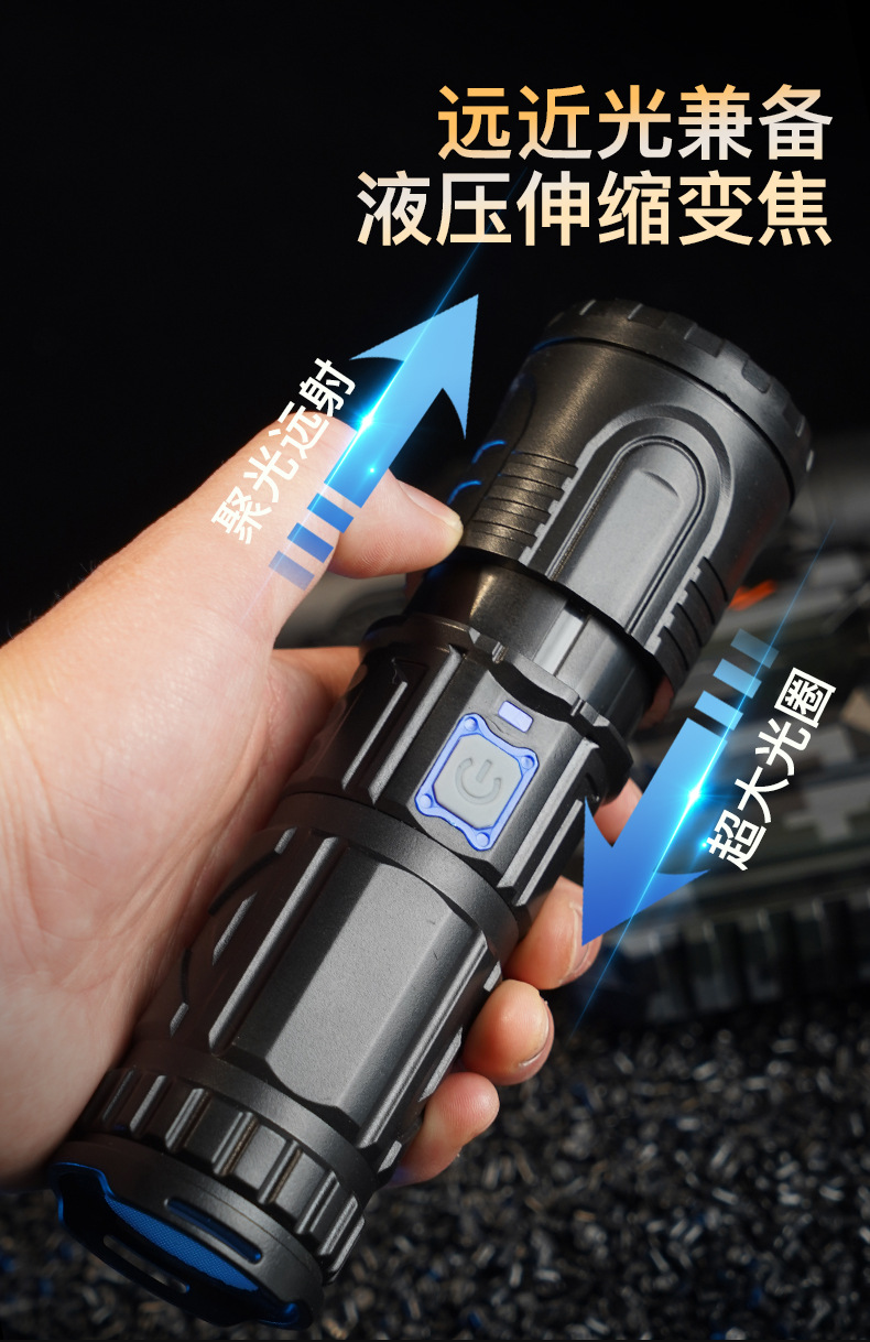 국경 간 채터 터링 폭발 흰색 레이저 텔레스코픽 줌 손전등 LED 장거리 빔 전원 디스플레이 USB 램프