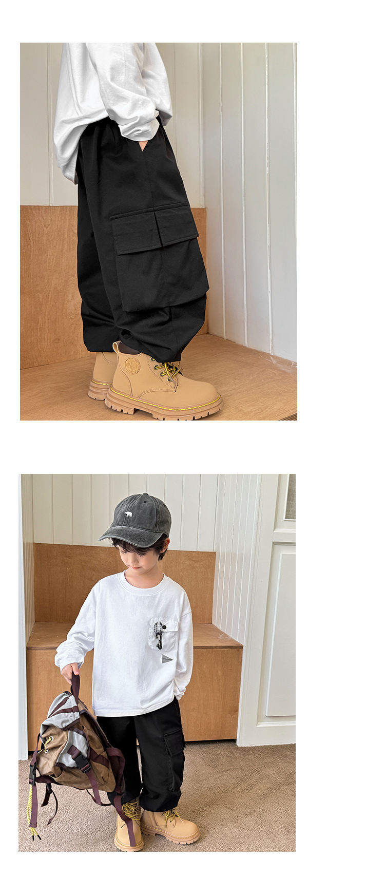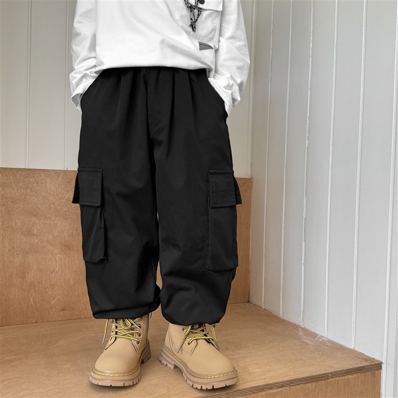 남아용 쿨 실크 코튼 작업복 바지 2025 하이마아 아동용 한국 스타일 큰 주머니 가을 바지 봄 가을 신상 아동복스토어 가기