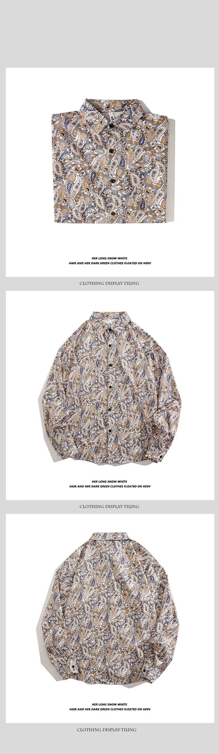 가을 트렌디 브랜드 인 빈티지 뉴 스타일 잘생긴 긴팔 셔츠 남성용 모든 매치 루즈한 커플 플라워 셔츠 힙합 유행 재킷스토어 가기
