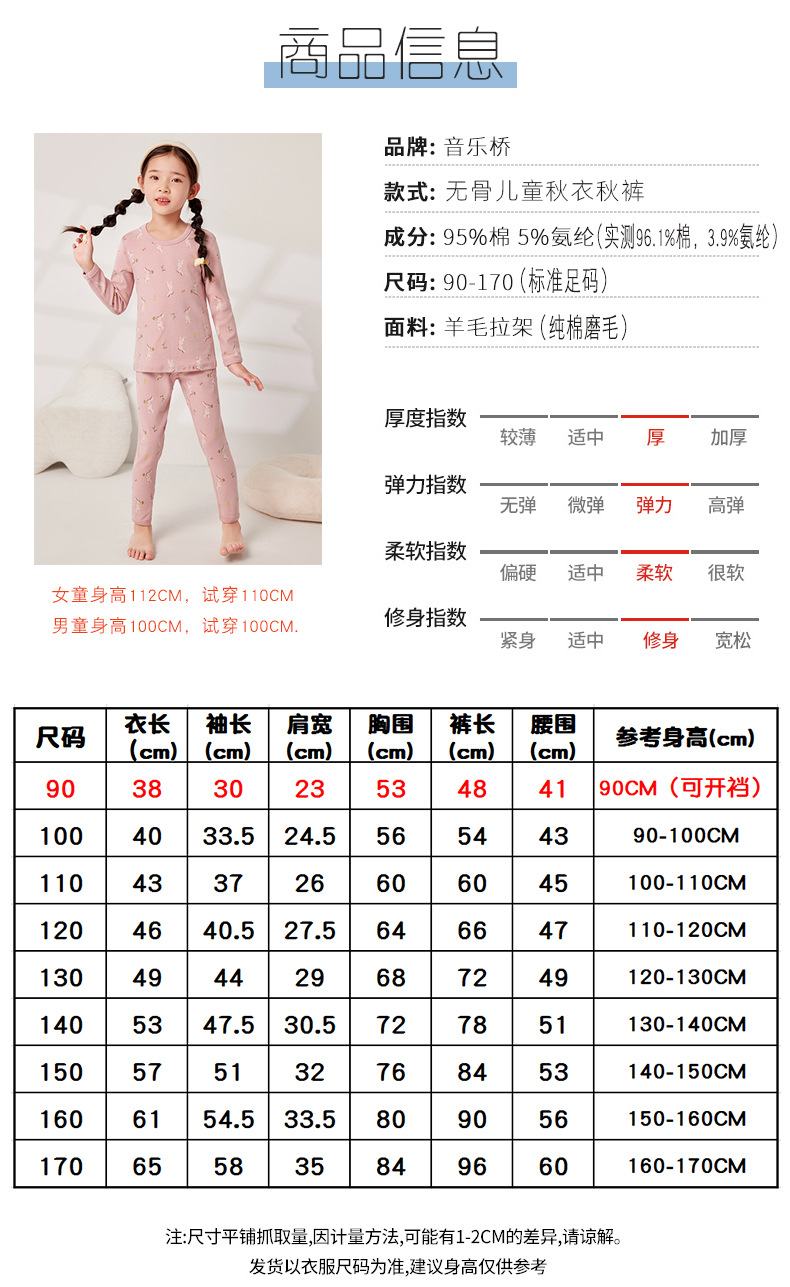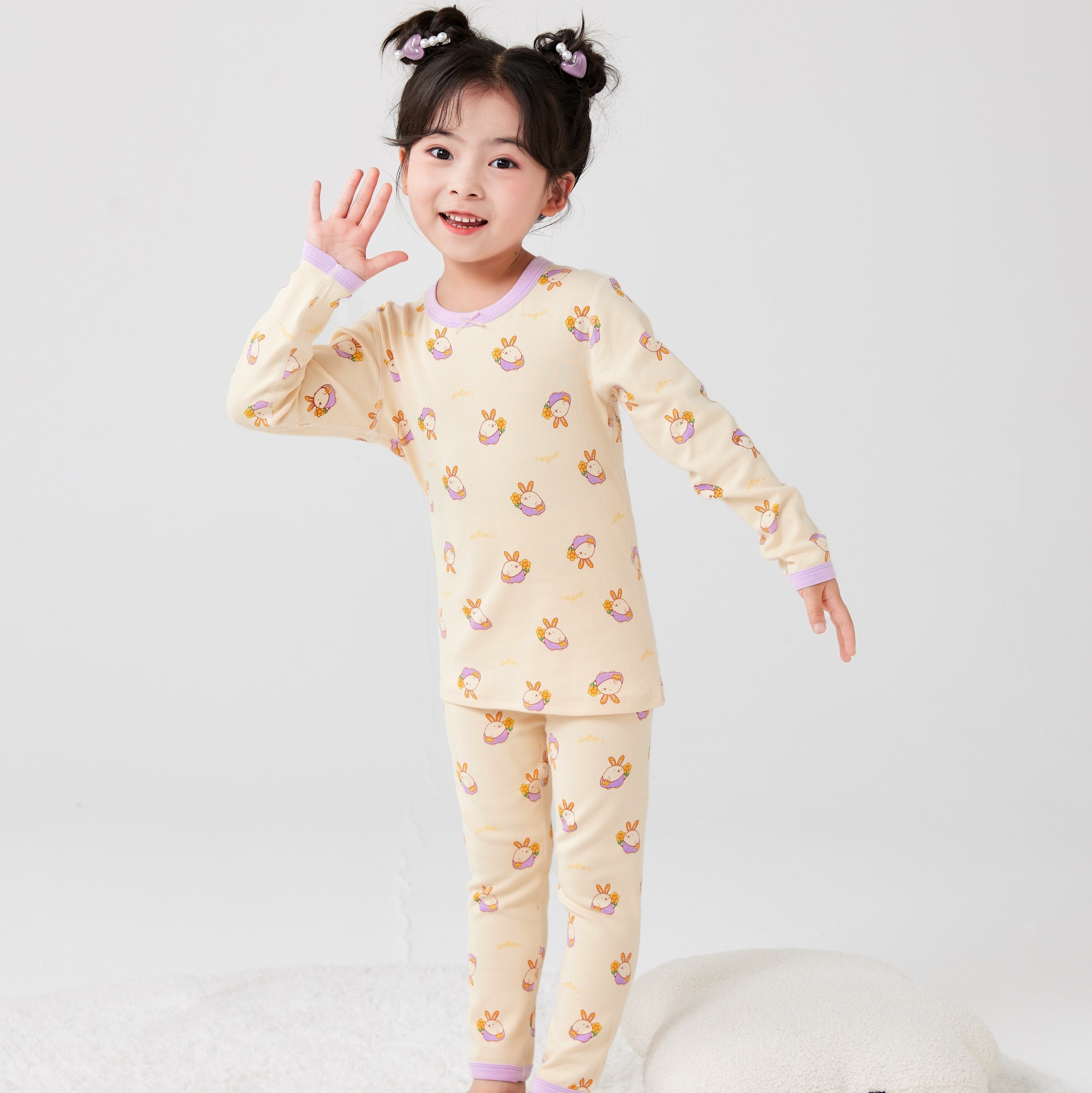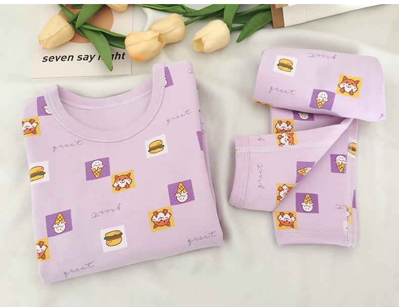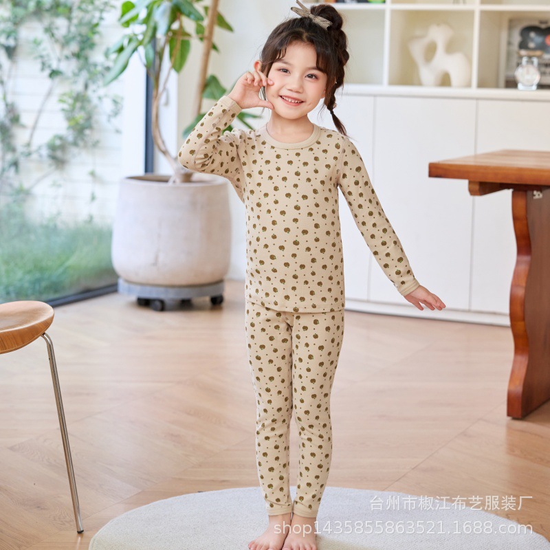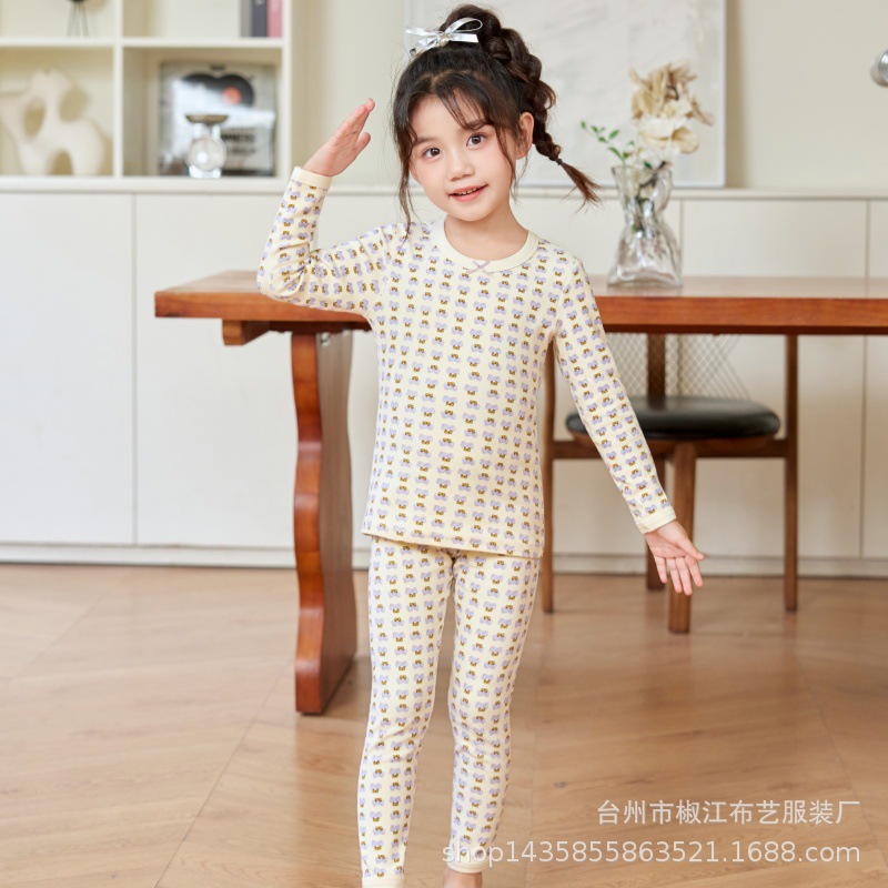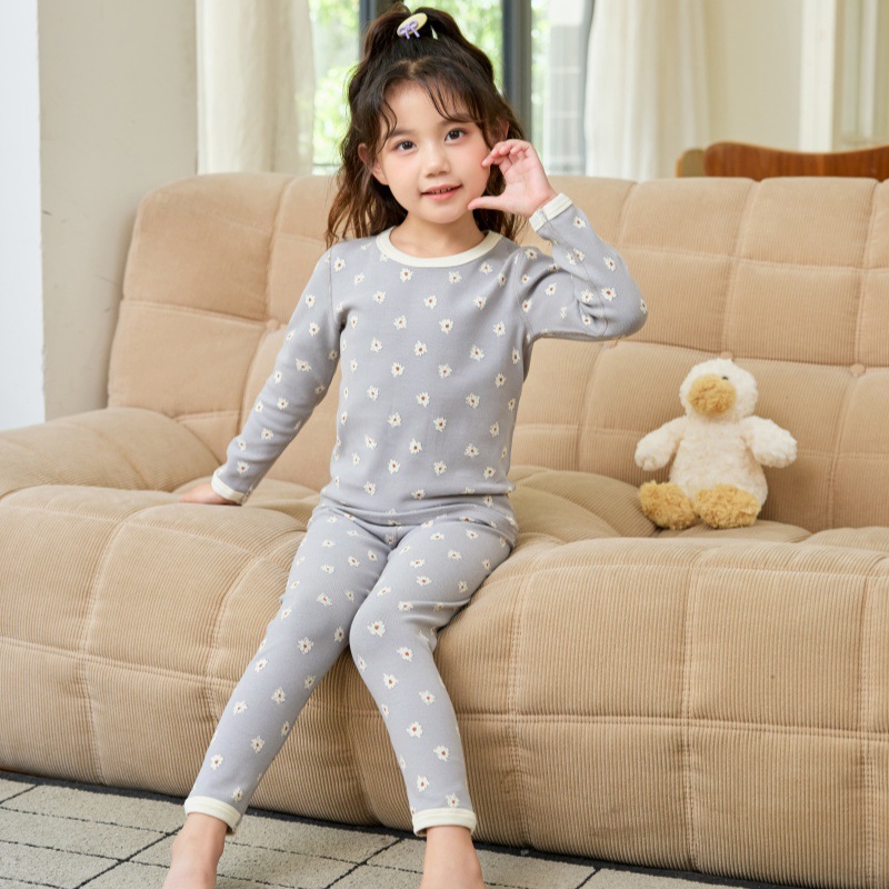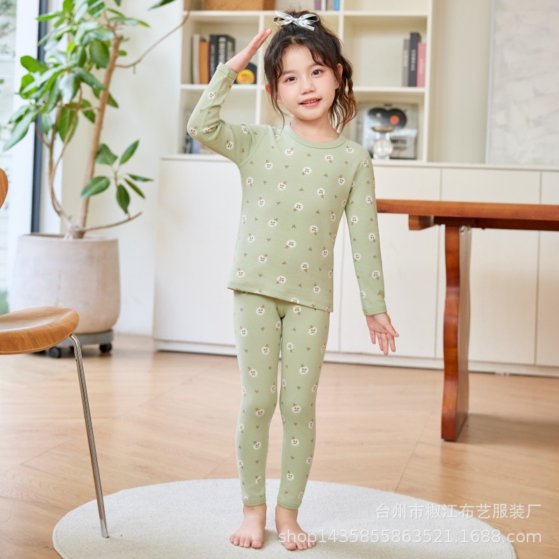아동 가을 옷 및 긴 바지 세트, 순면 여아 보온 속옷, 울 스트레치 꽃무늬 아기 가을 옷, 카테고리 A