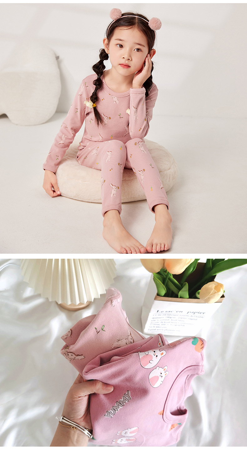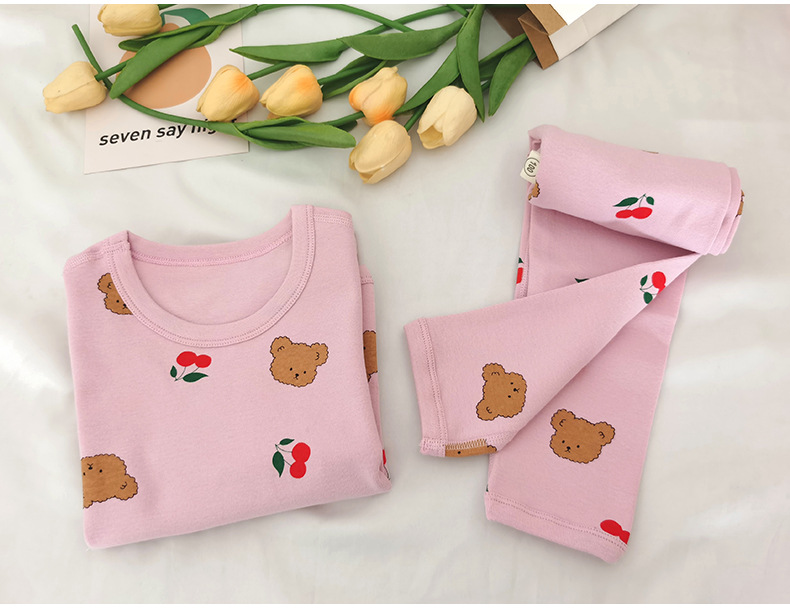 아동 가을 옷 및 긴 바지 세트, 순면 여아 보온 속옷, 울 스트레치 꽃무늬 아기 가을 옷, 카테고리 A스토어 가기