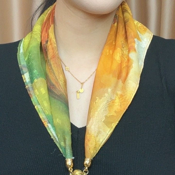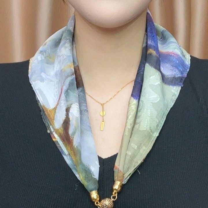 [리브 새틴 마그네틱 버클 스카프] 새로운 마그네틱 버클 작은 스카프 여성용 봄과 가을 조커 다목적 스카프 인터넷 연예인 같은 스타일스토어 가기