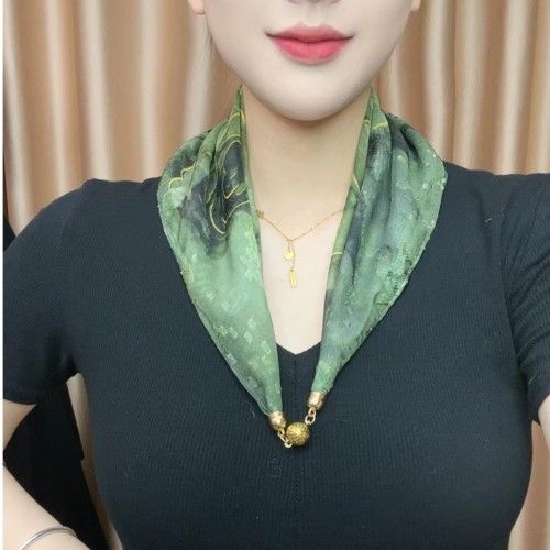 [리브 새틴 마그네틱 버클 스카프] 새로운 마그네틱 버클 작은 스카프 여성용 봄과 가을 조커 다목적 스카프 인터넷 연예인 같은 스타일