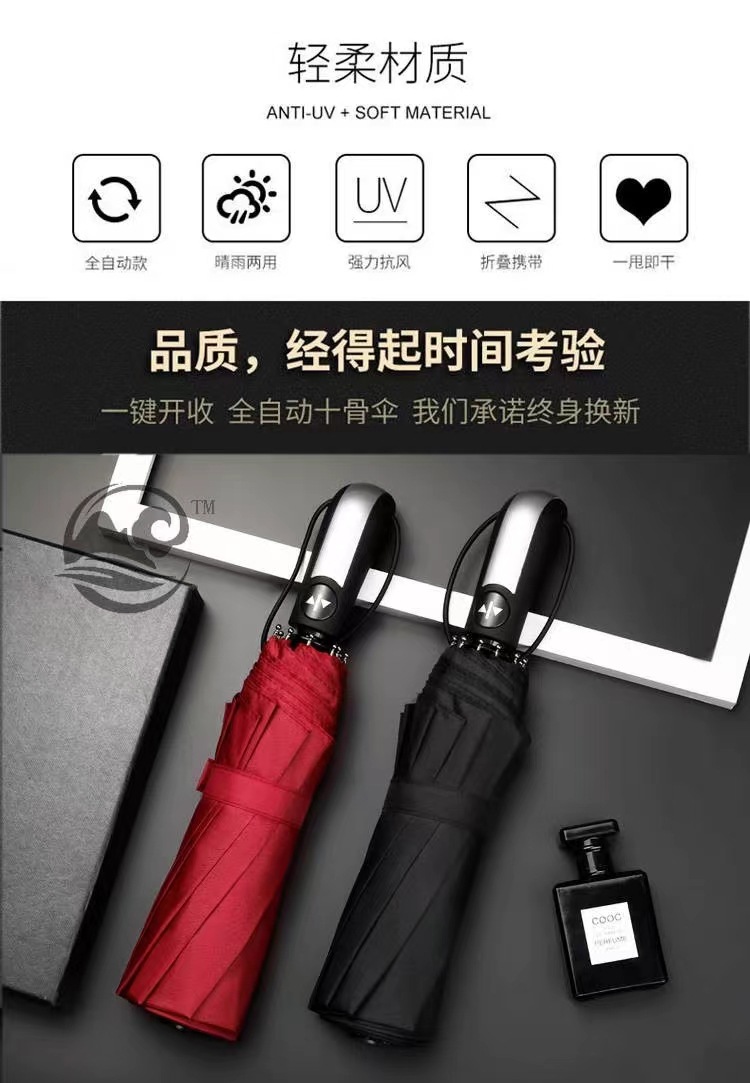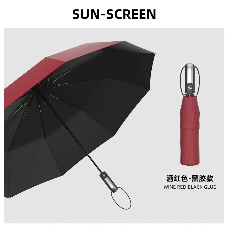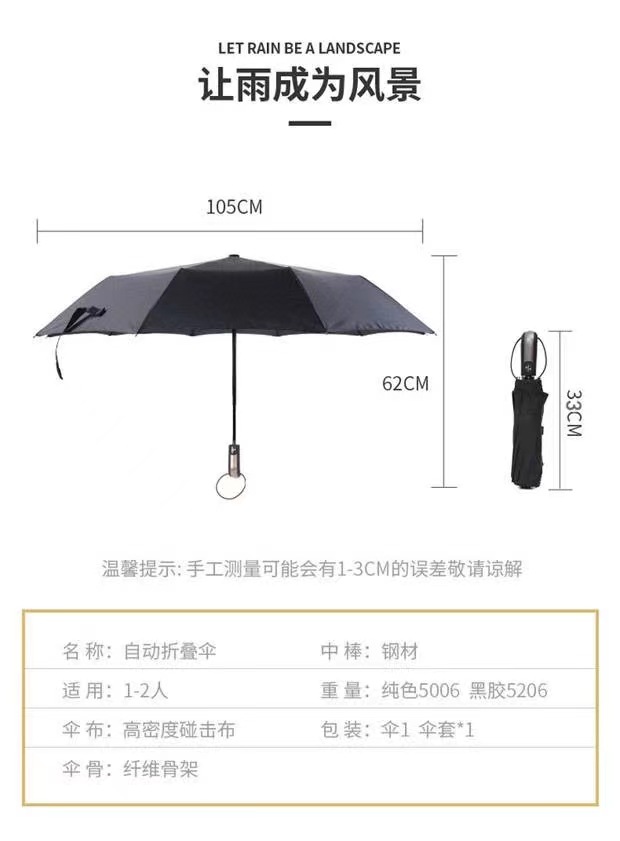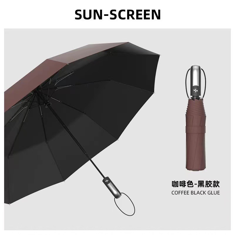 완전 자동 우산, 블랙 글로스 자외선 차단 우산, 70% off단 접이식 우산, 햇빛과 비를 겸용하는 접이식 야외용 우산