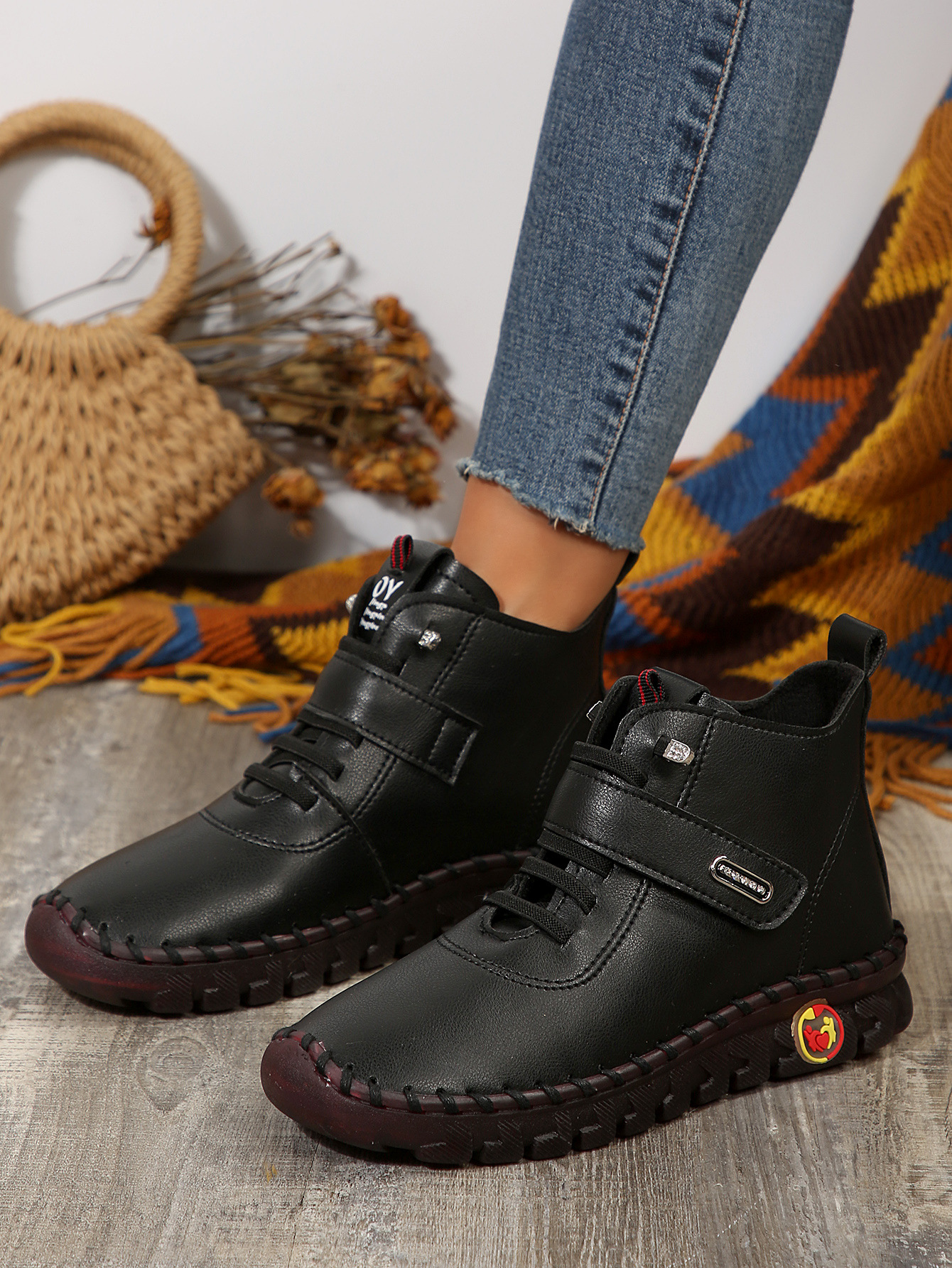 크로스 보더 폭발 여성 신발 기모 따뜻한 하이탑 면 신발 겨울 손 스티치 어머니 신발 아마존 부드러운 바닥 플랫 바닥