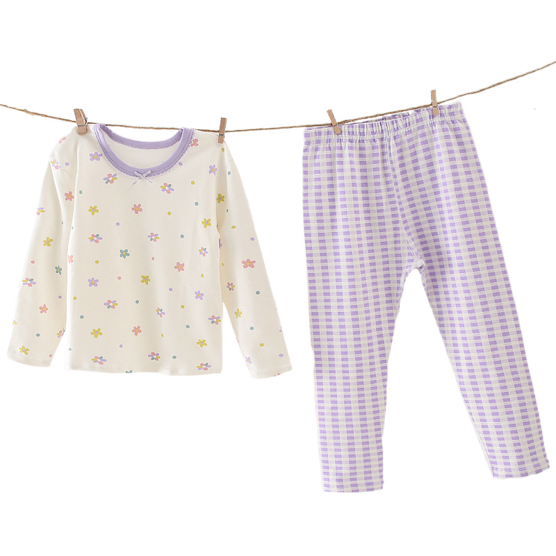봄과 가을 새로운 어린이 뼈없는 가을 옷 긴 존스 홈 세트 여아 잠옷 순면 클래스 A 샌딩 열 속옷스토어 가기