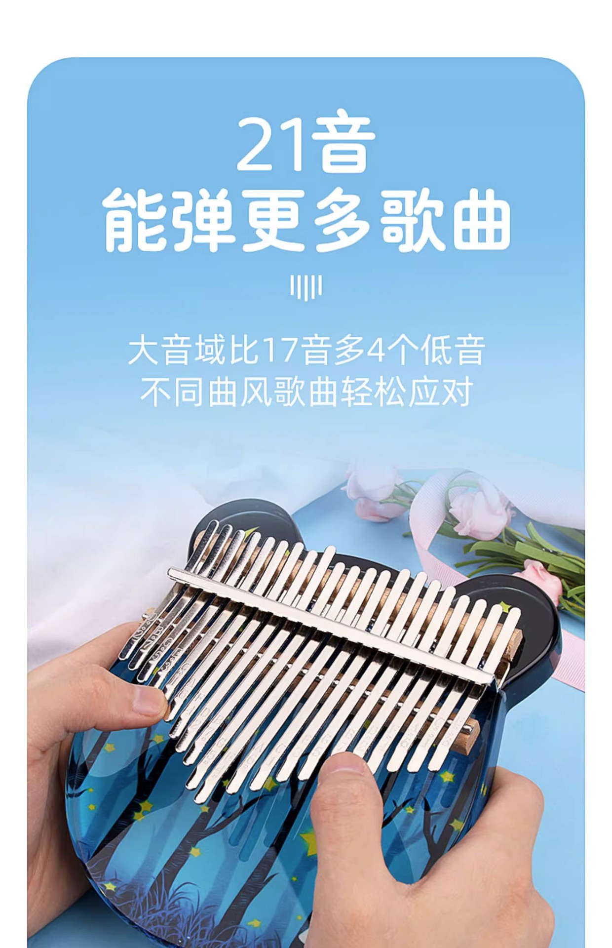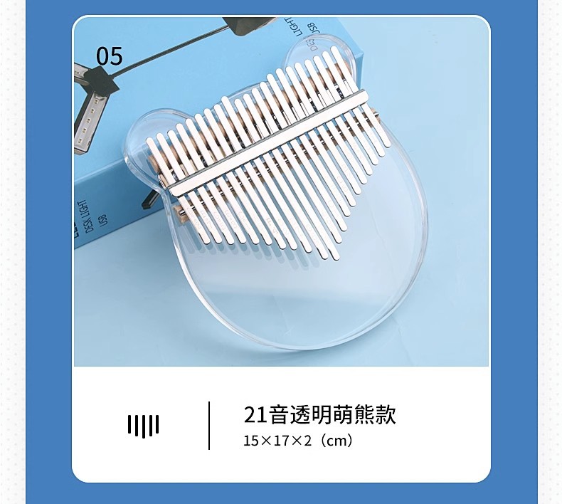 칼린바 피아노 17 톤 엄지 피아노 21 톤 초보 손가락 피아노 손가락 크리스탈 투명 초급 어린이 악기