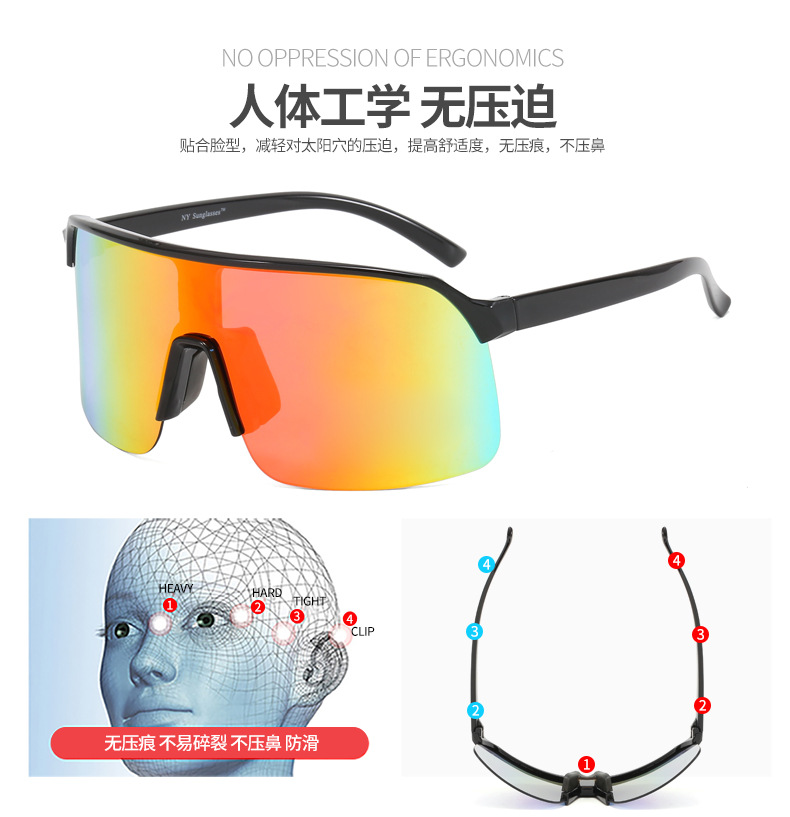 欧美新款骑行眼镜男女士户外运动炫彩墨镜个性时尚防风太阳镜批发