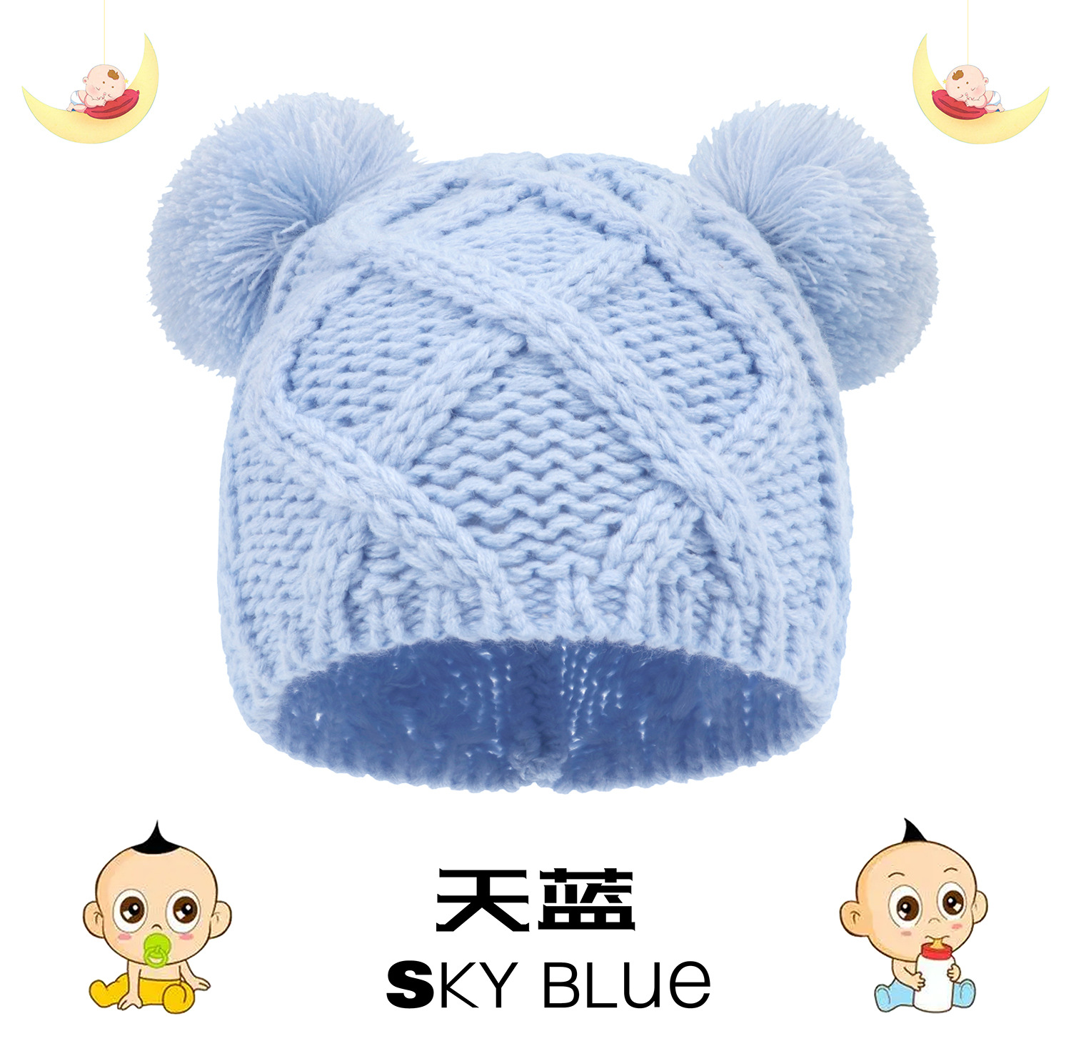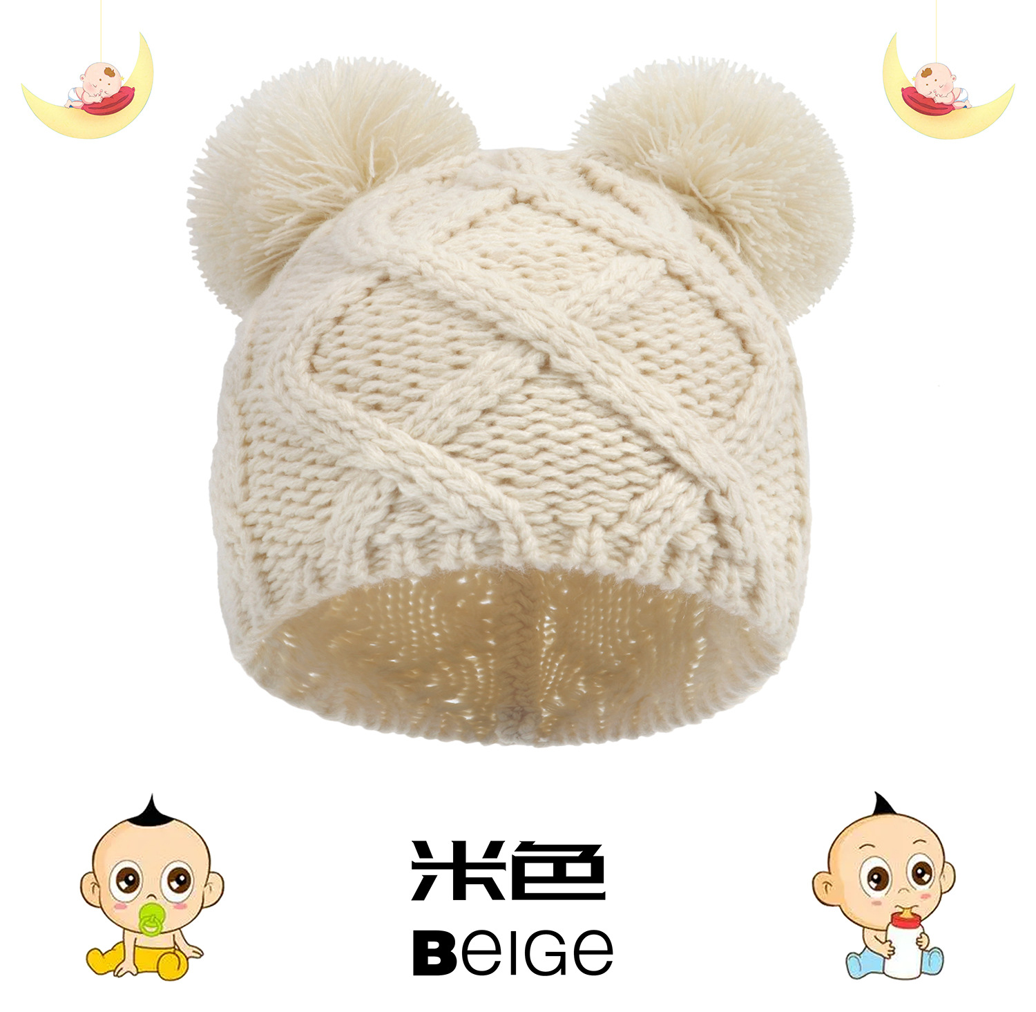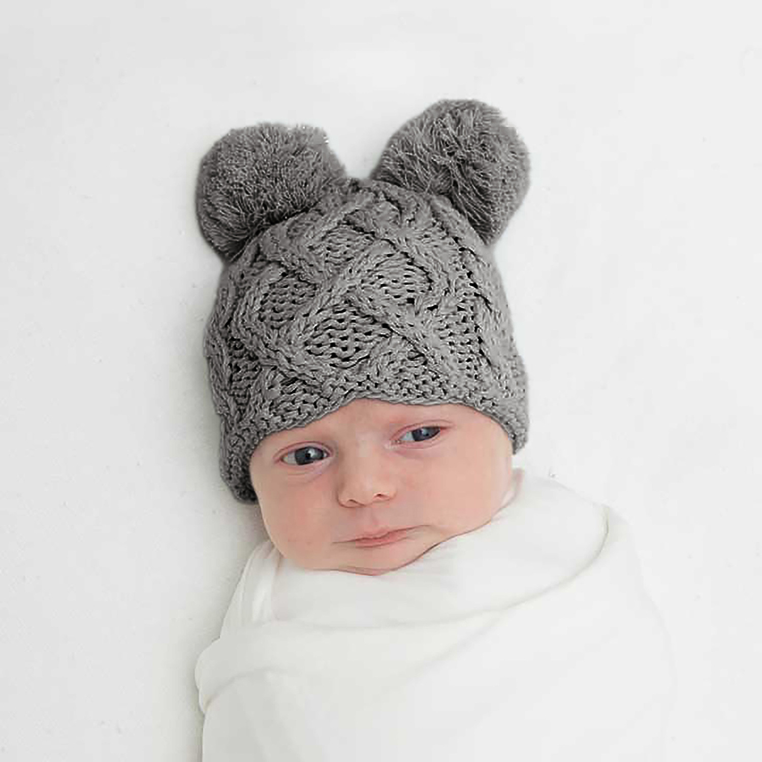 신생아 아기 사진 모자 아기 니트 더블 볼 모자 아기 따뜻한 곰 울 모자
