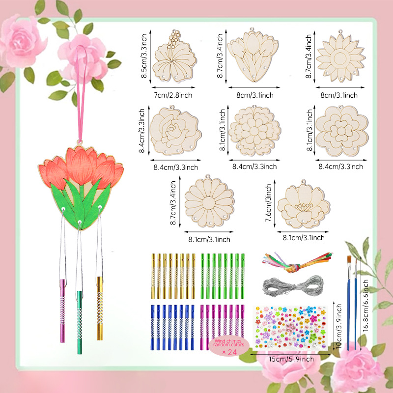 • 꽃바람 차임 8개 + 드릴 + 막대 24개 + 펜 2개 + 밧줄 + 실