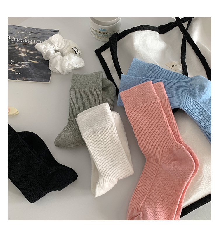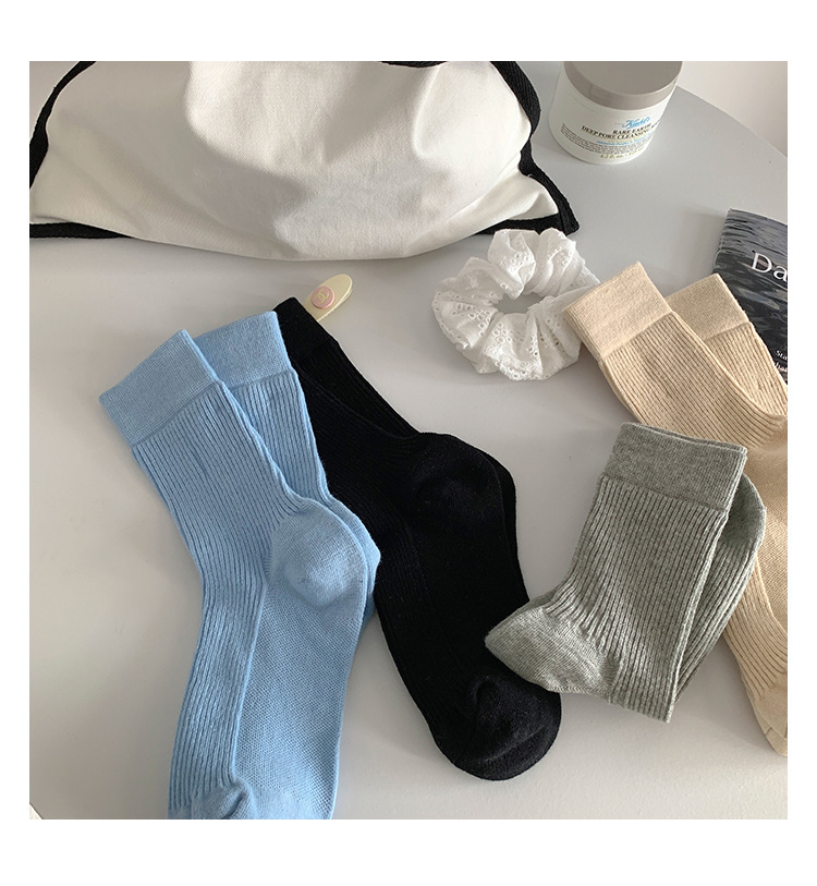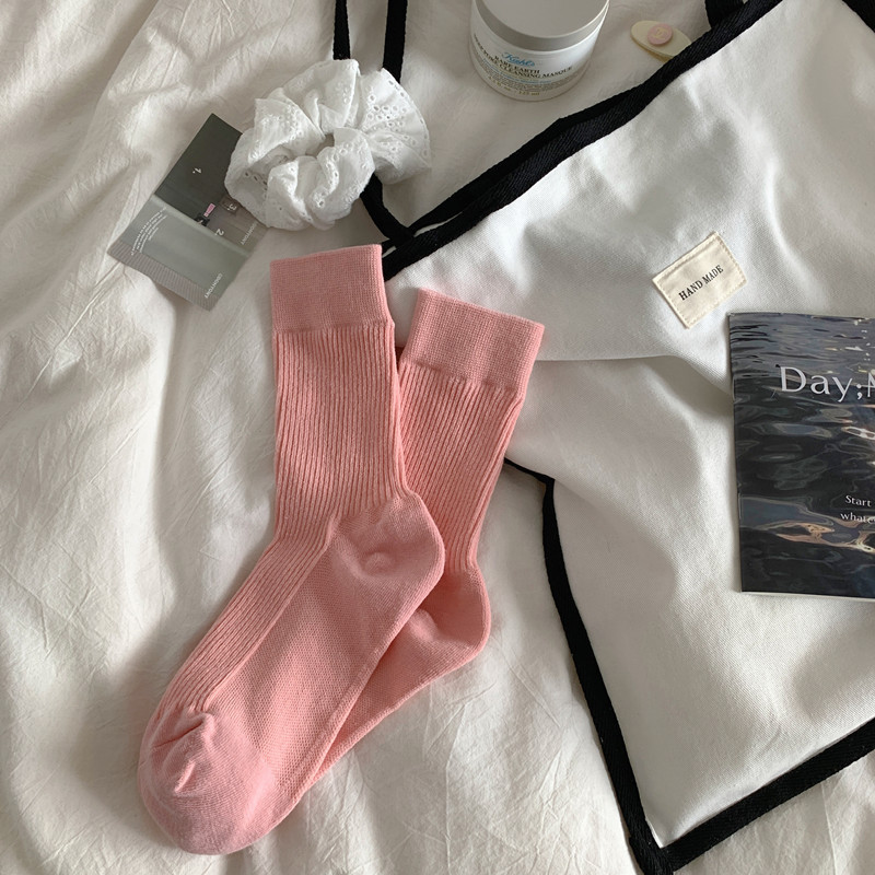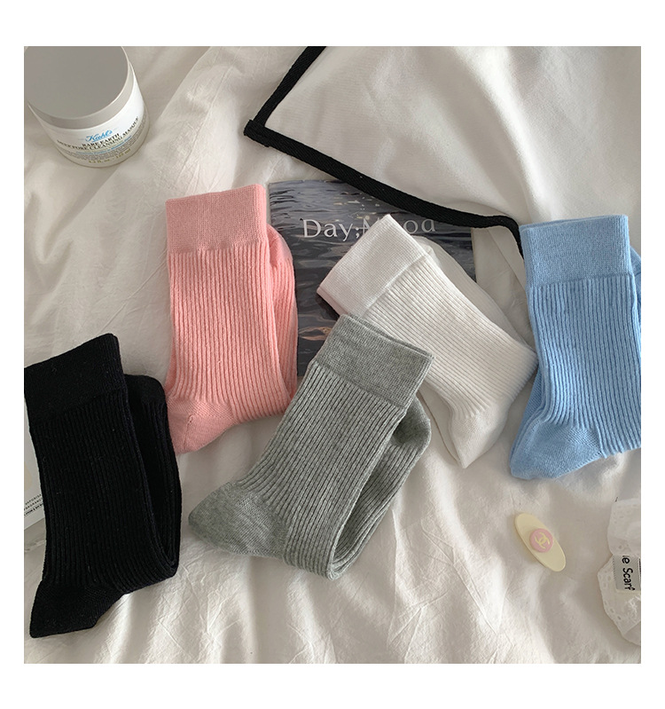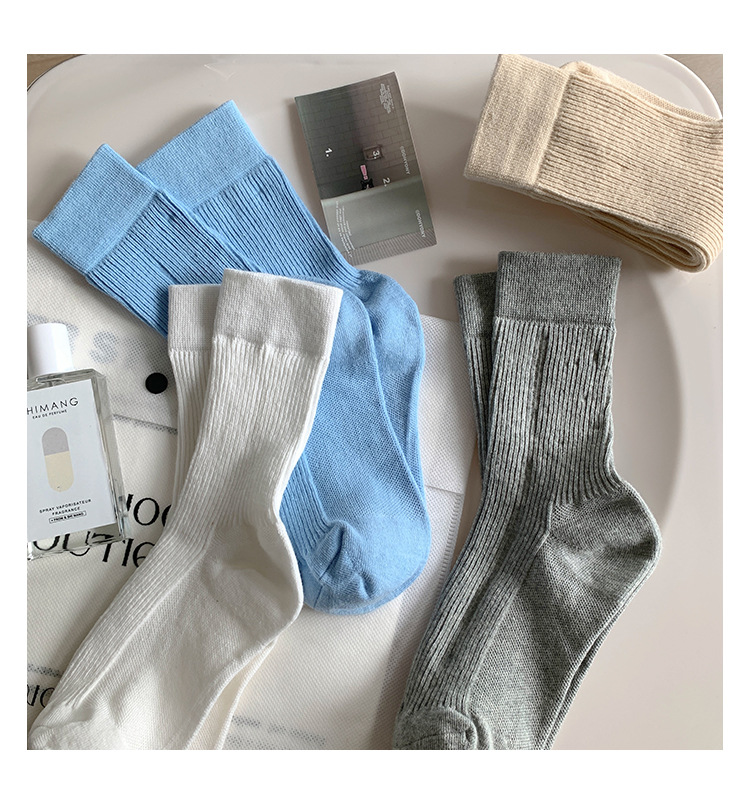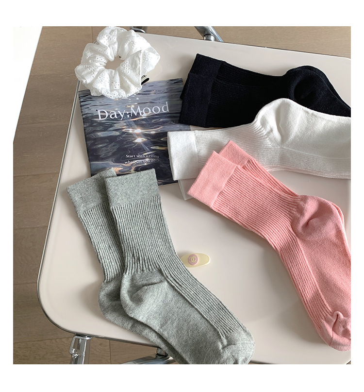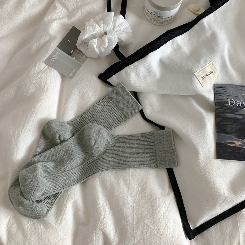 양말 여성용 중간 길이 양말 봄과 가을 일본 단색 면 양말 모든 경기 흑백 가을과 겨울 쌓인 달 양말