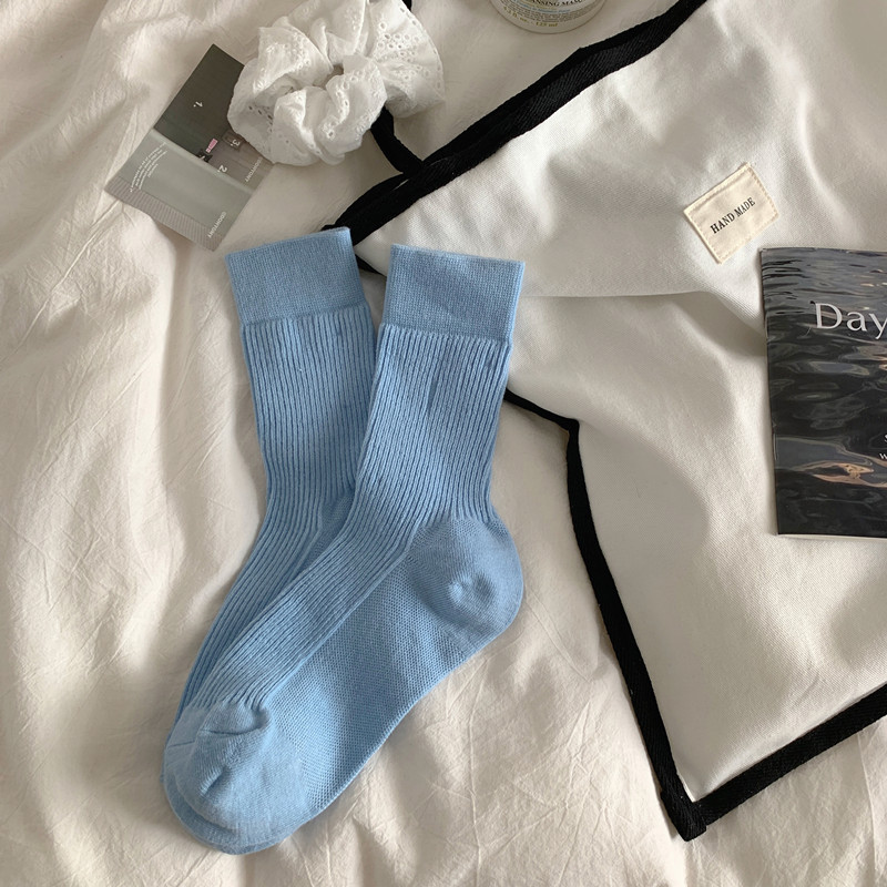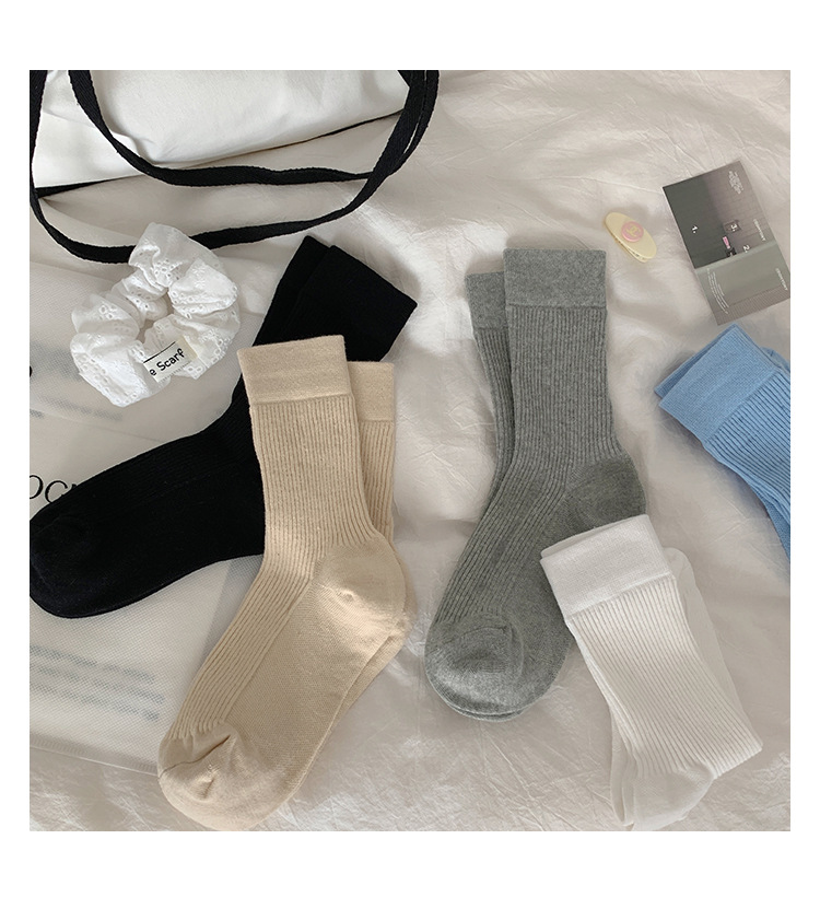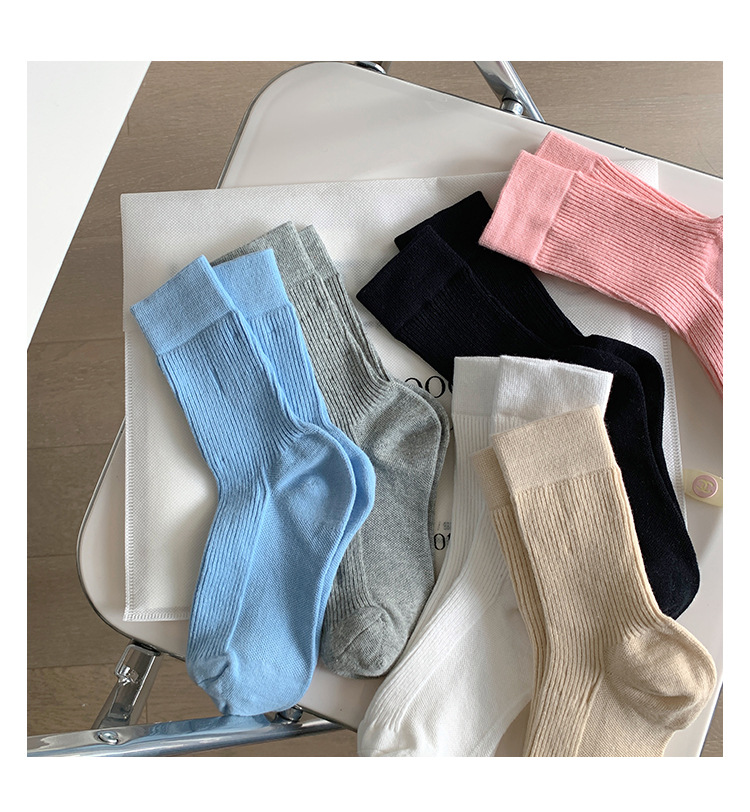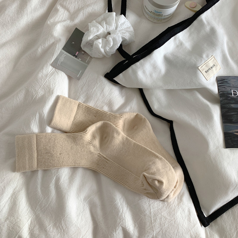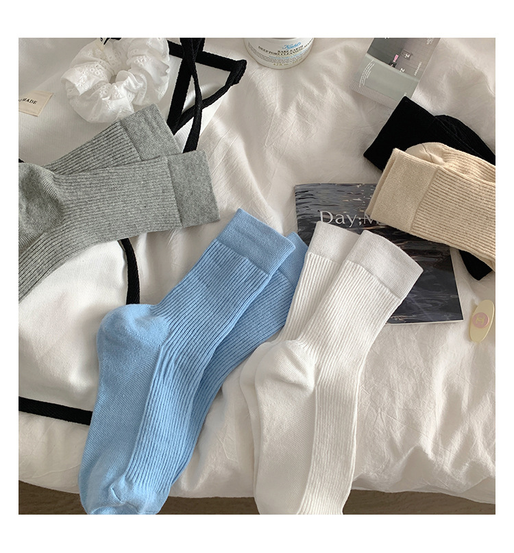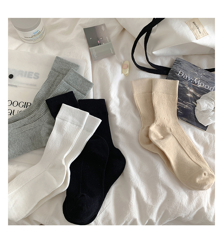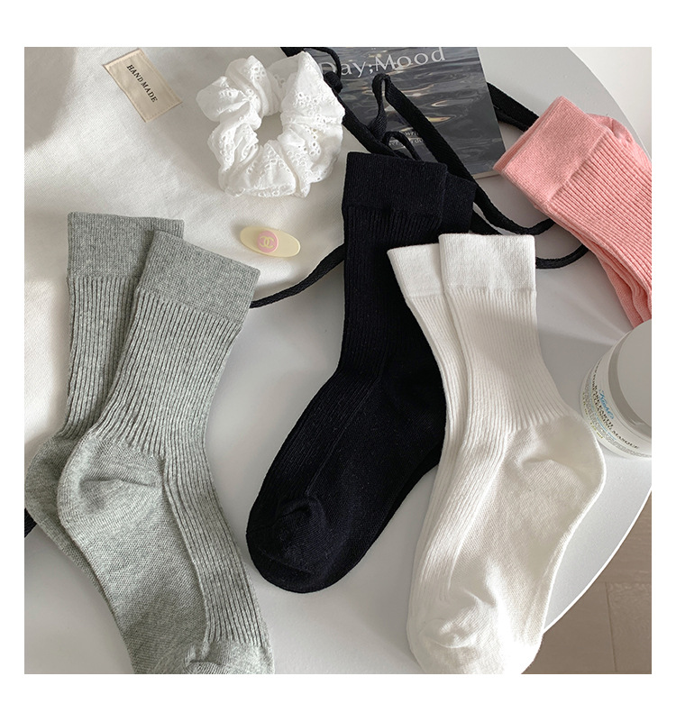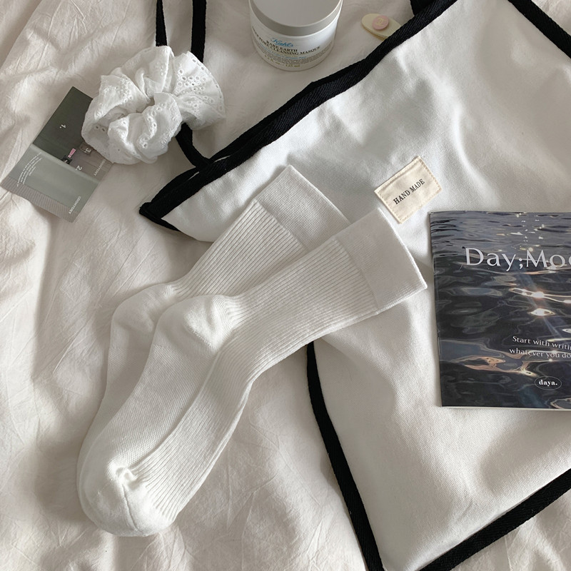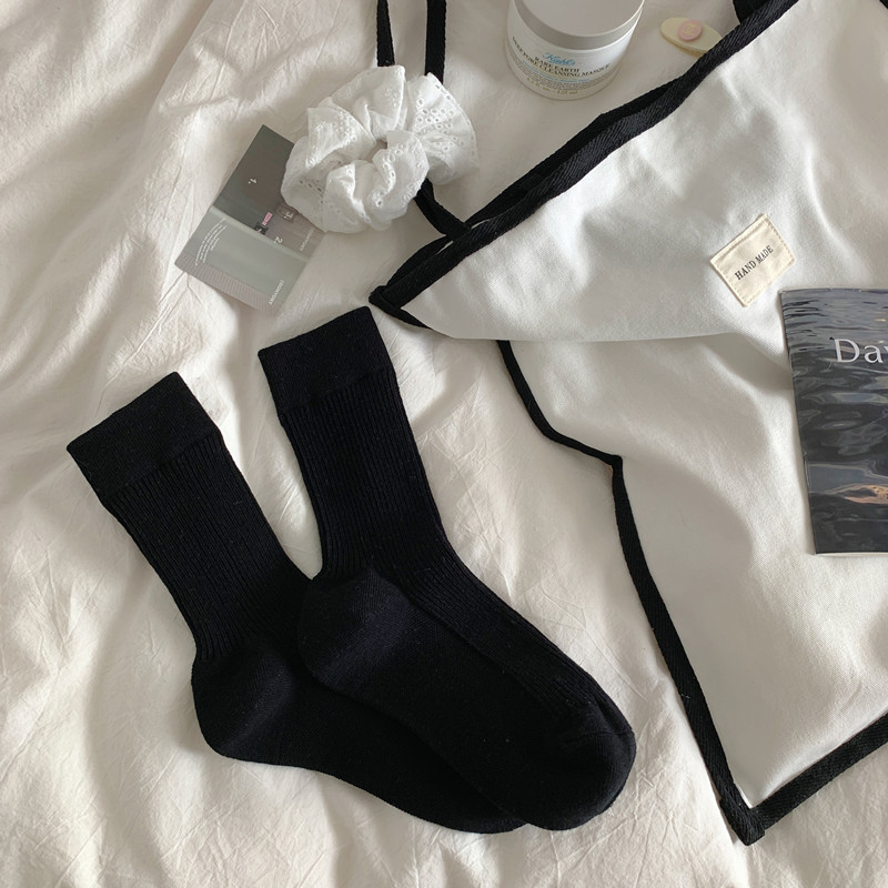 양말 여성용 중간 길이 양말 봄과 가을 일본 단색 면 양말 모든 경기 흑백 가을과 겨울 쌓인 달 양말스토어 가기
