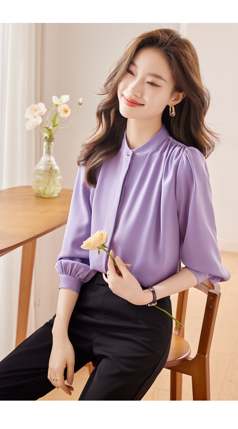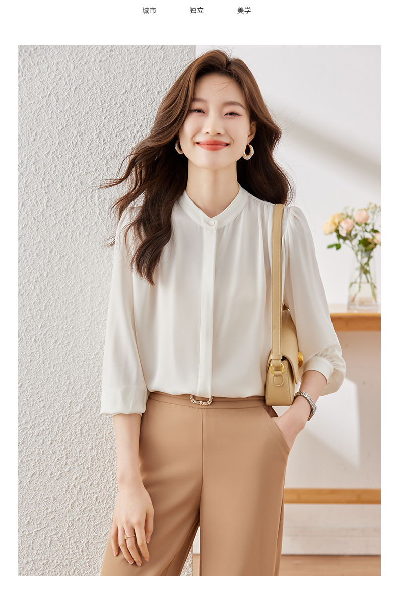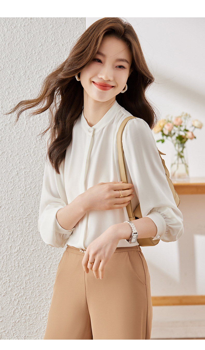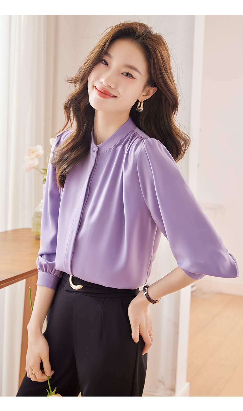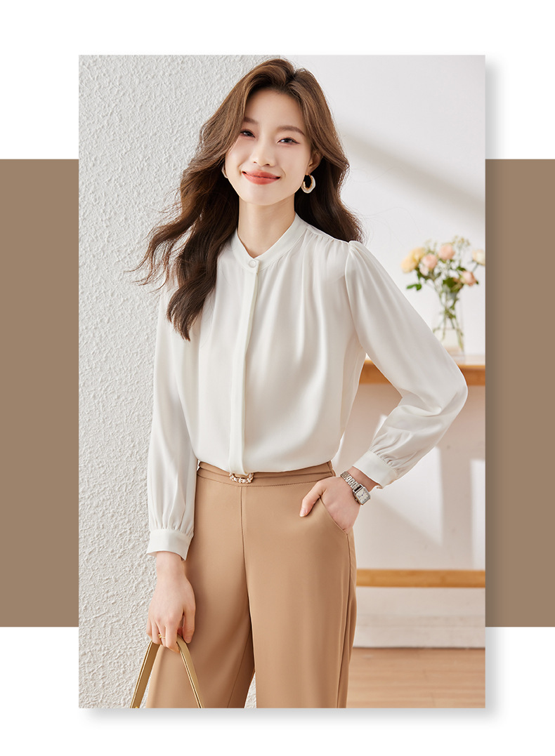 새로운 패션 나이 감소 작은 스탠드 칼라 셔츠 여성용 긴팔 비 다림질 안티 러닝 가벼운 캐주얼 전문 겉옷 셔츠 원피스스토어 가기