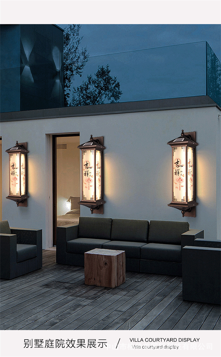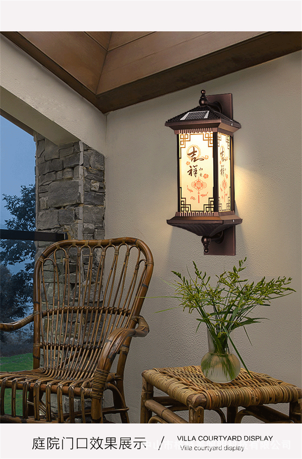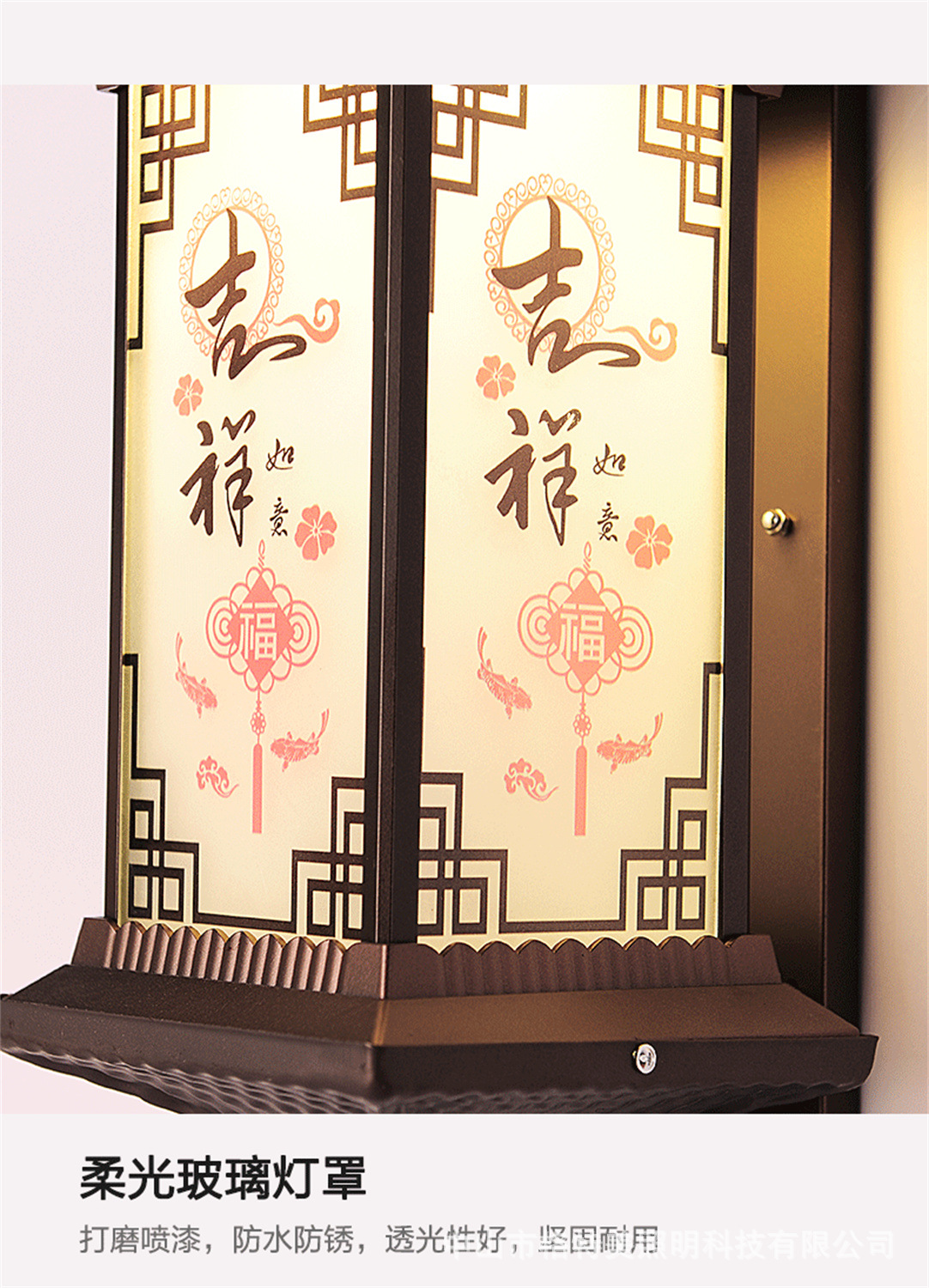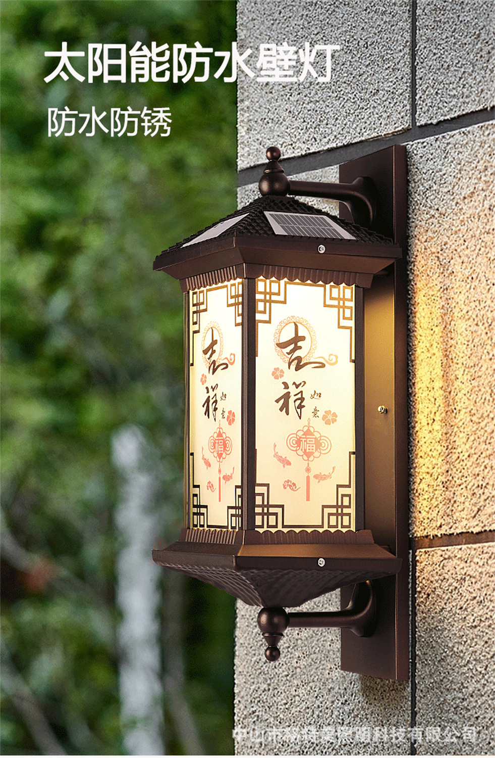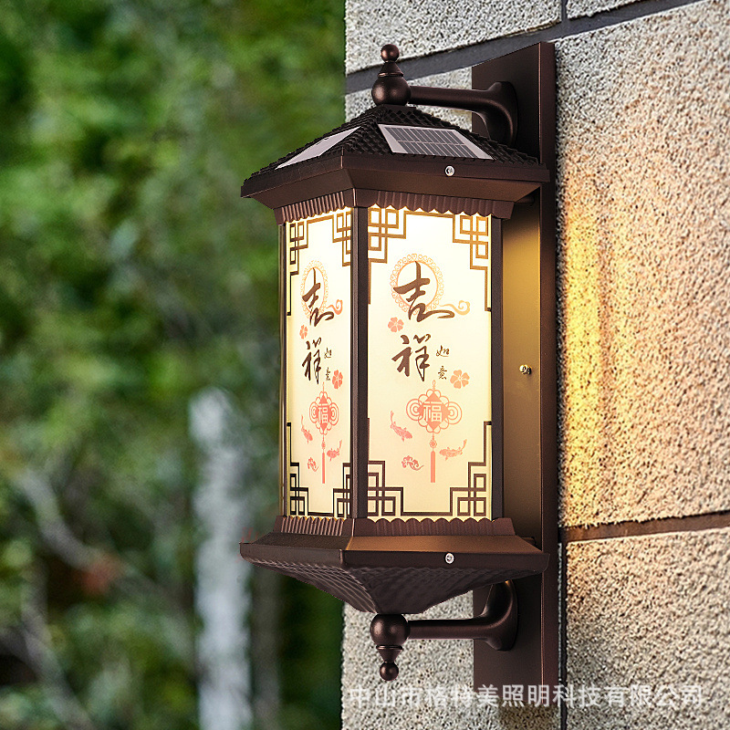 길조 태양 벽 램프 새로운 중국 스타일 고대 풍경 벽 램프 야외 방수 빌라 안뜰 조경 램프