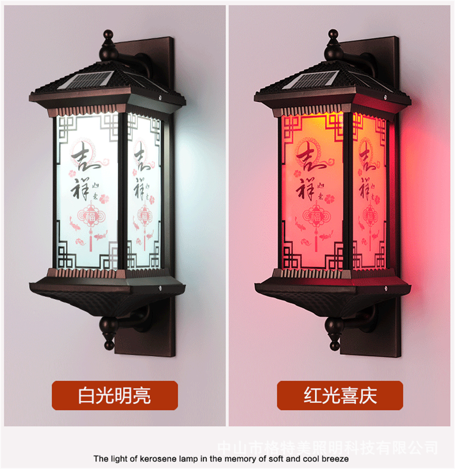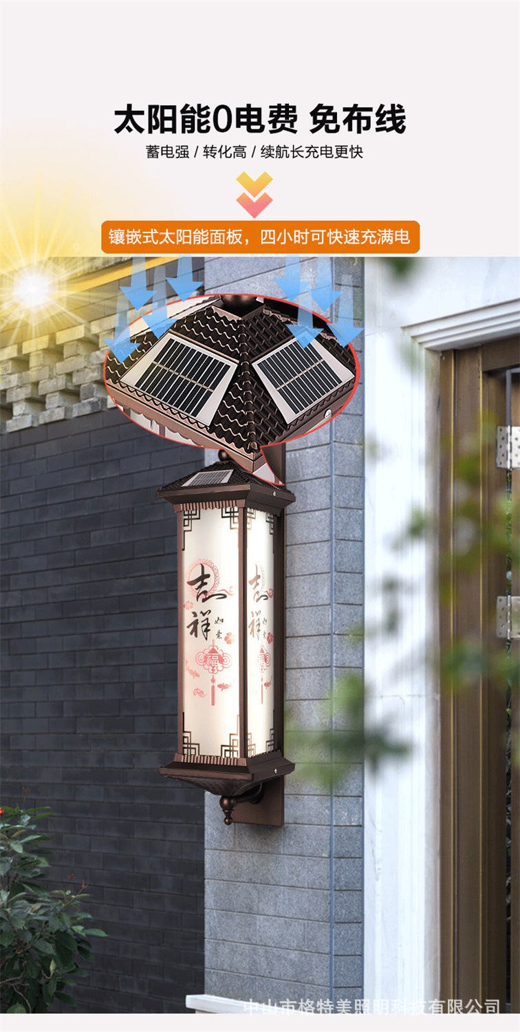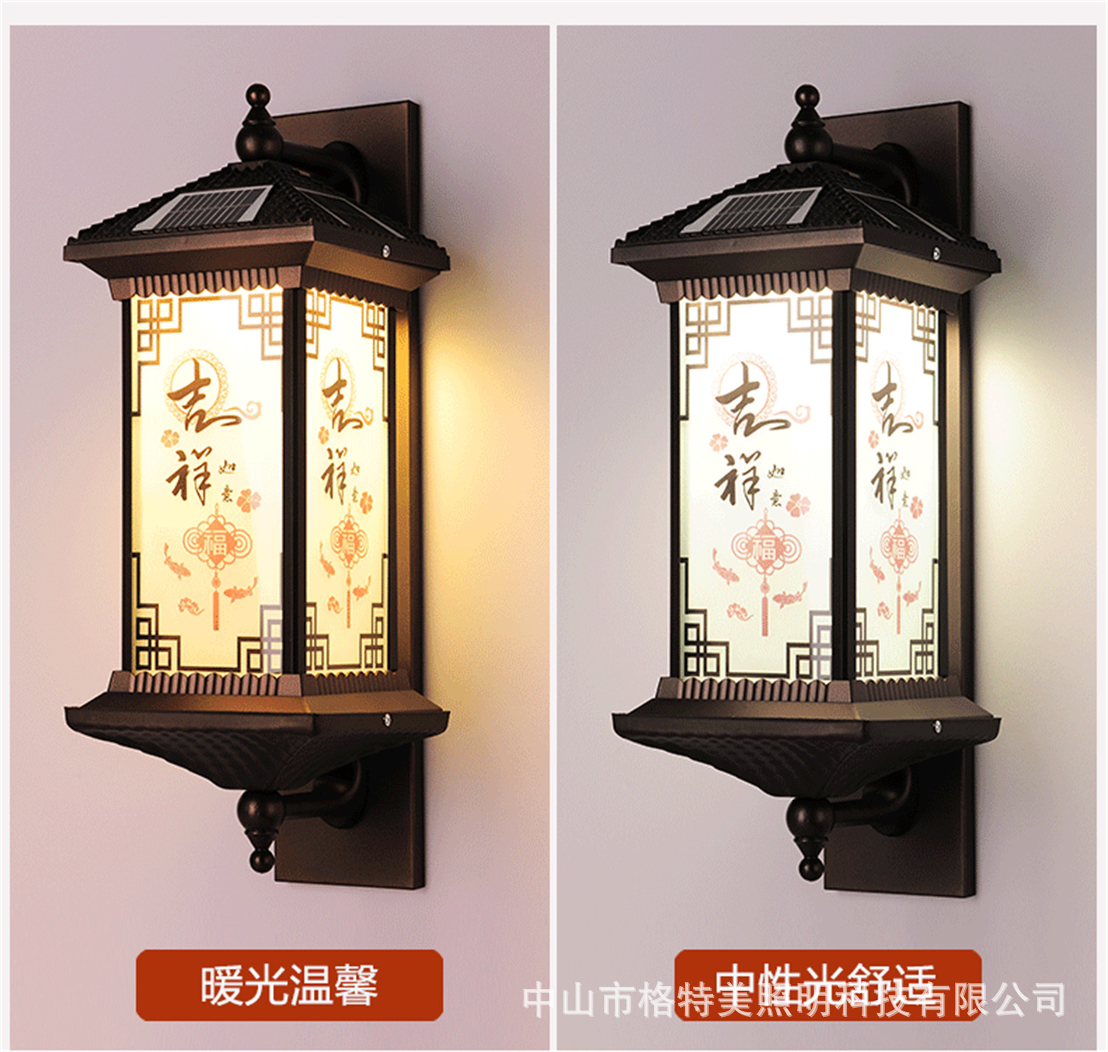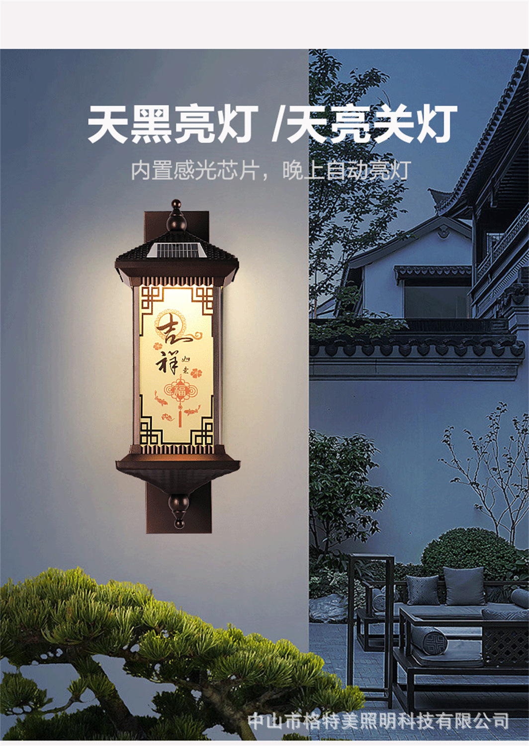 길조 태양 벽 램프 새로운 중국 스타일 고대 풍경 벽 램프 야외 방수 빌라 안뜰 조경 램프