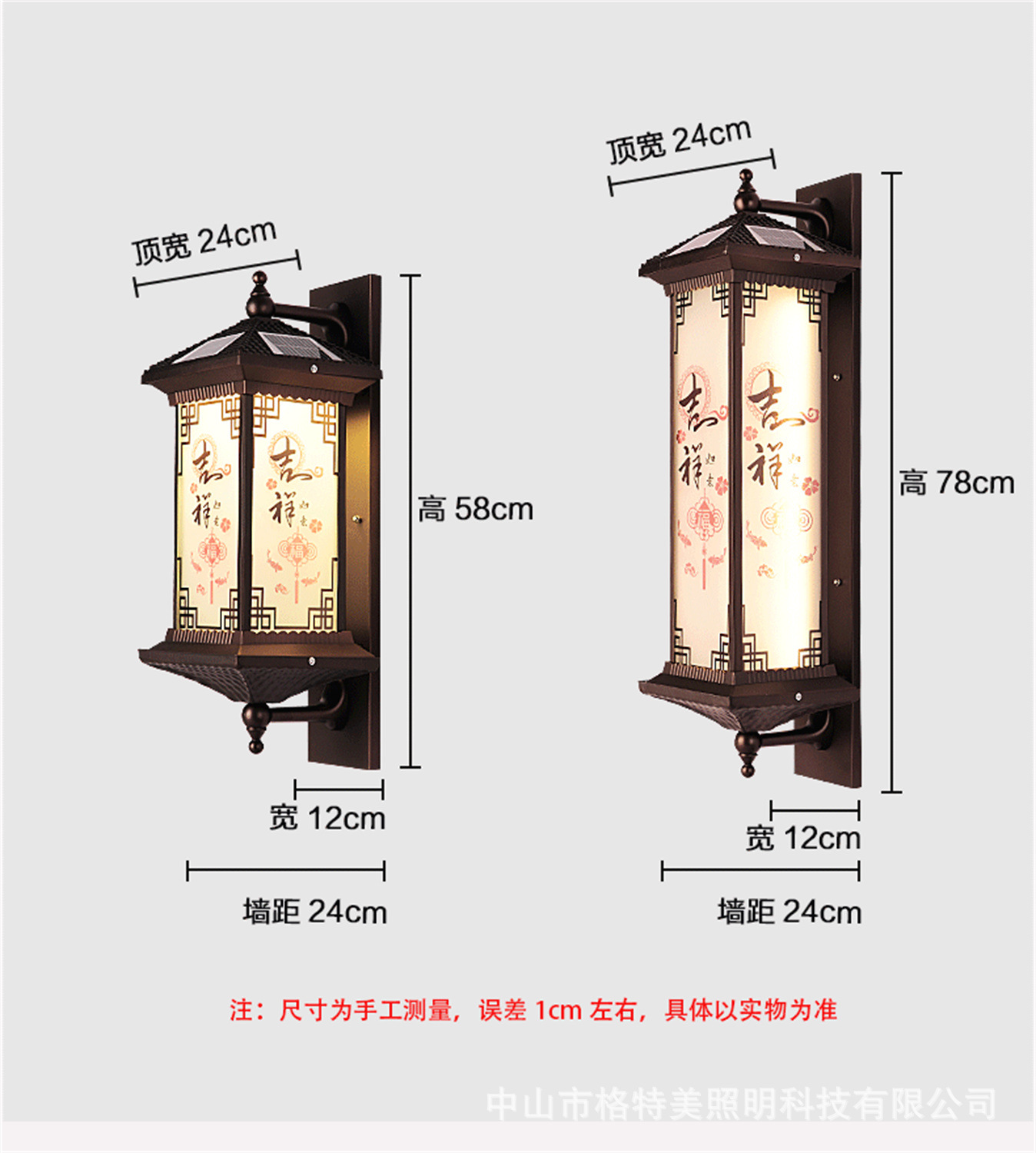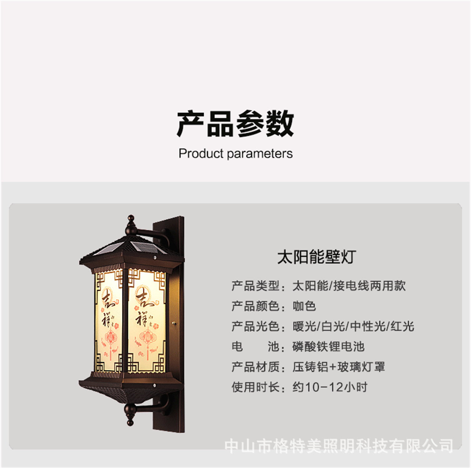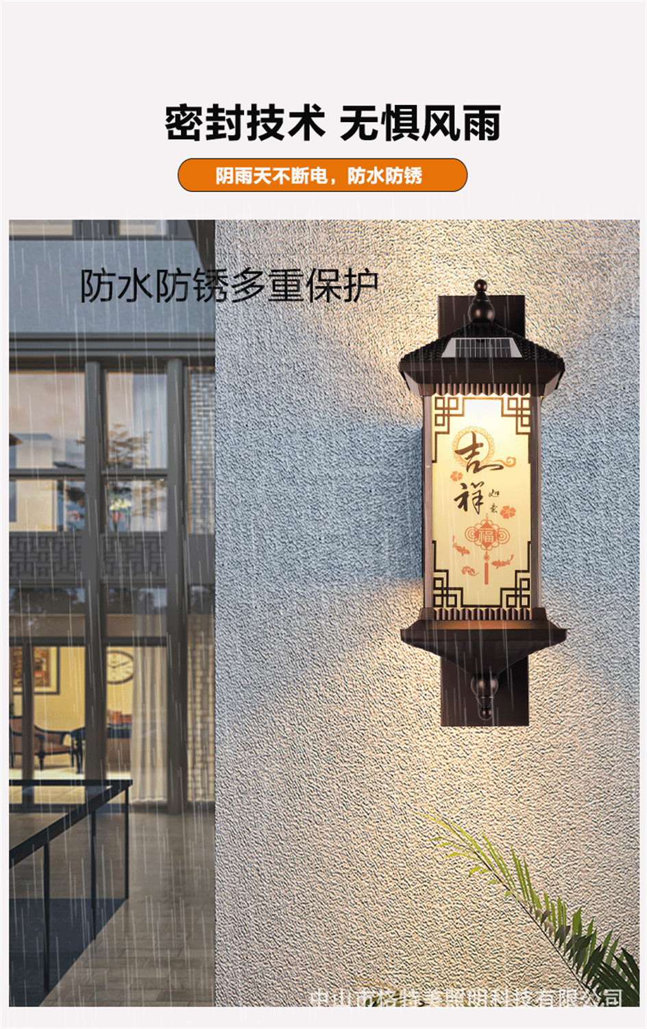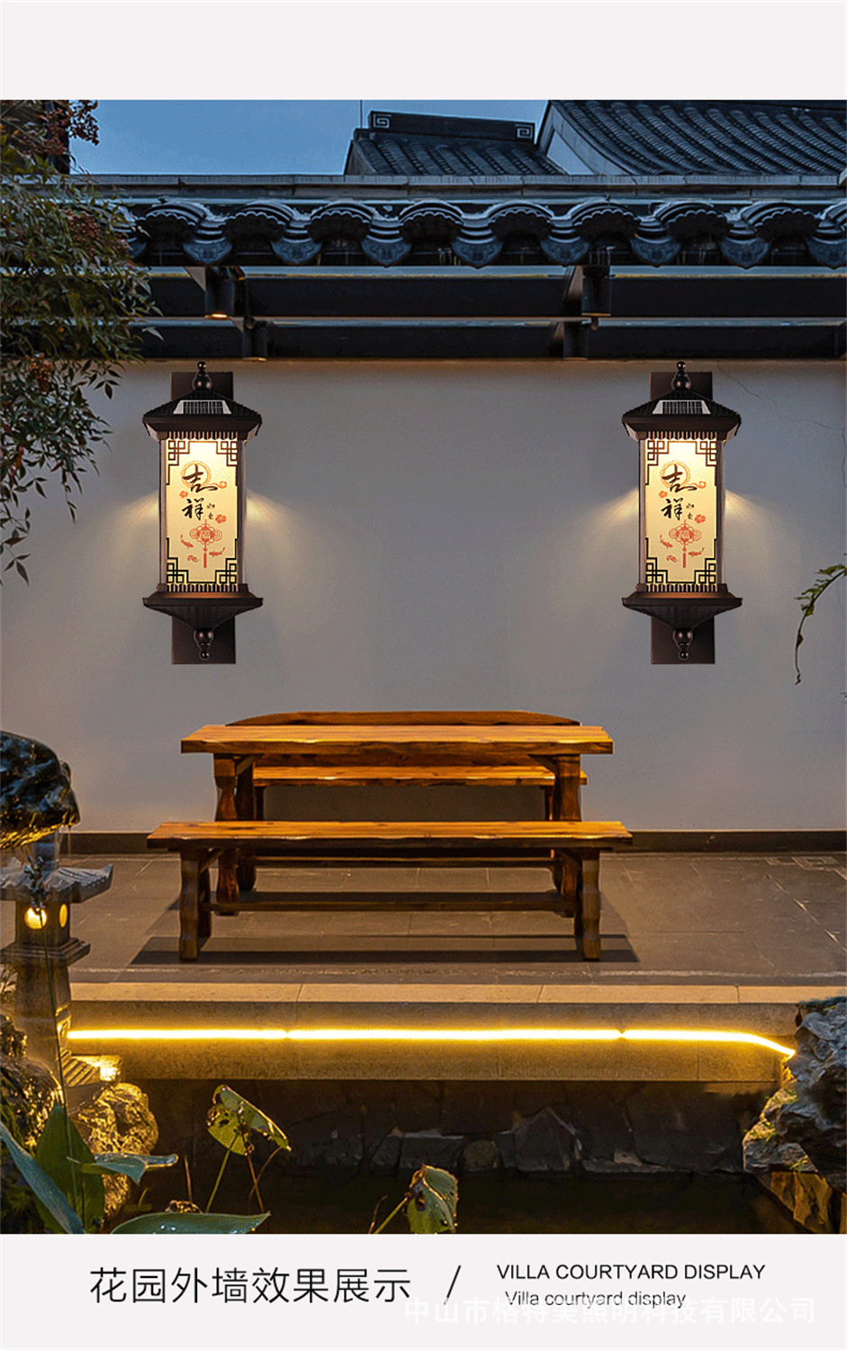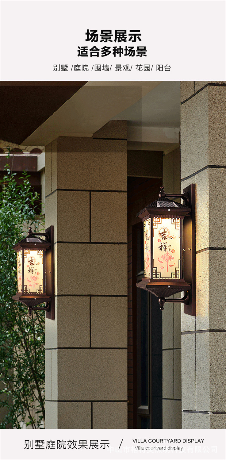 길조 태양 벽 램프 새로운 중국 스타일 고대 풍경 벽 램프 야외 방수 빌라 안뜰 조경 램프