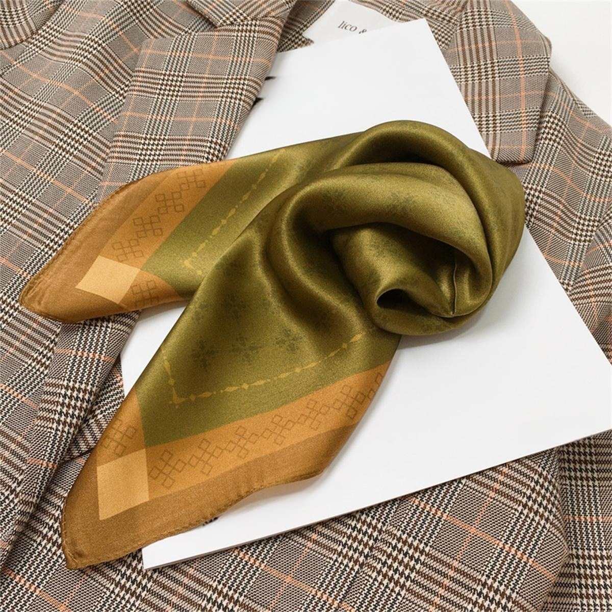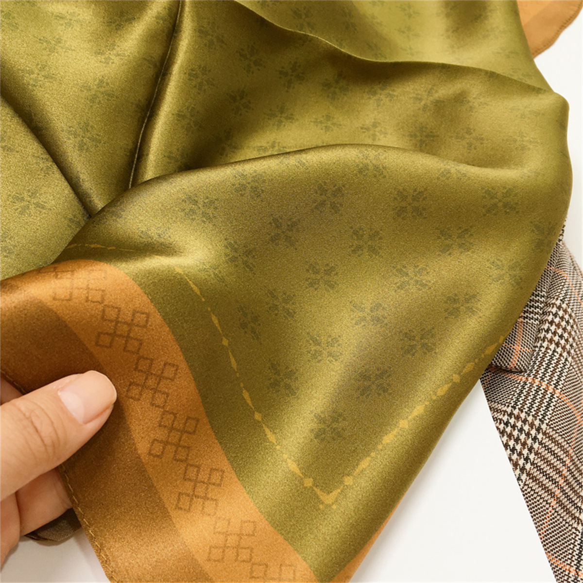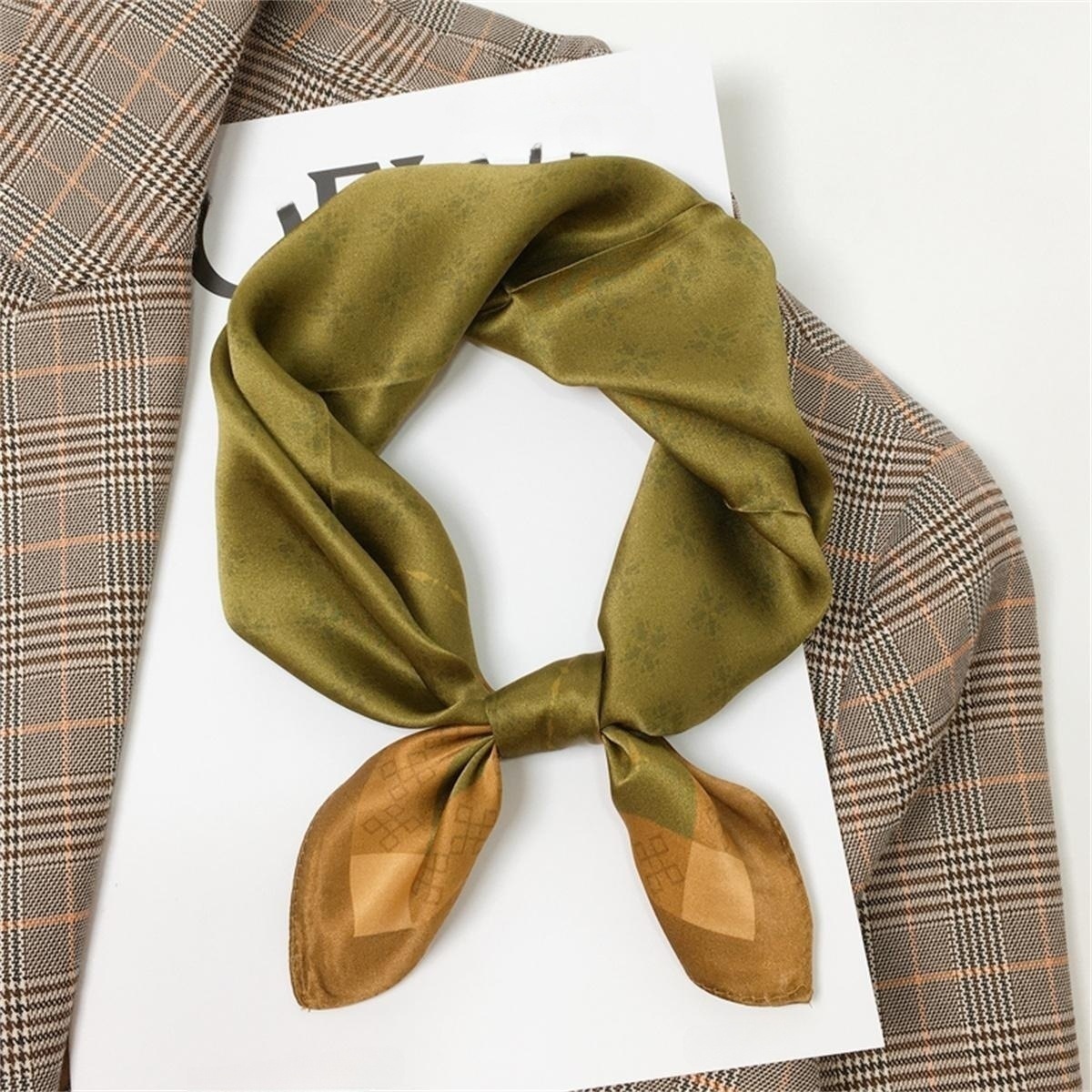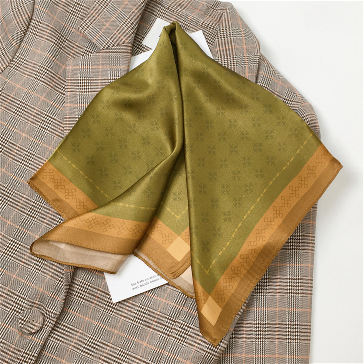 올리브 그린 클로버 70cm 인공 실크 작은 사각형 스카프 봄과 가을 장식 스카프 여성용 스카프 얇은 선물 스카프