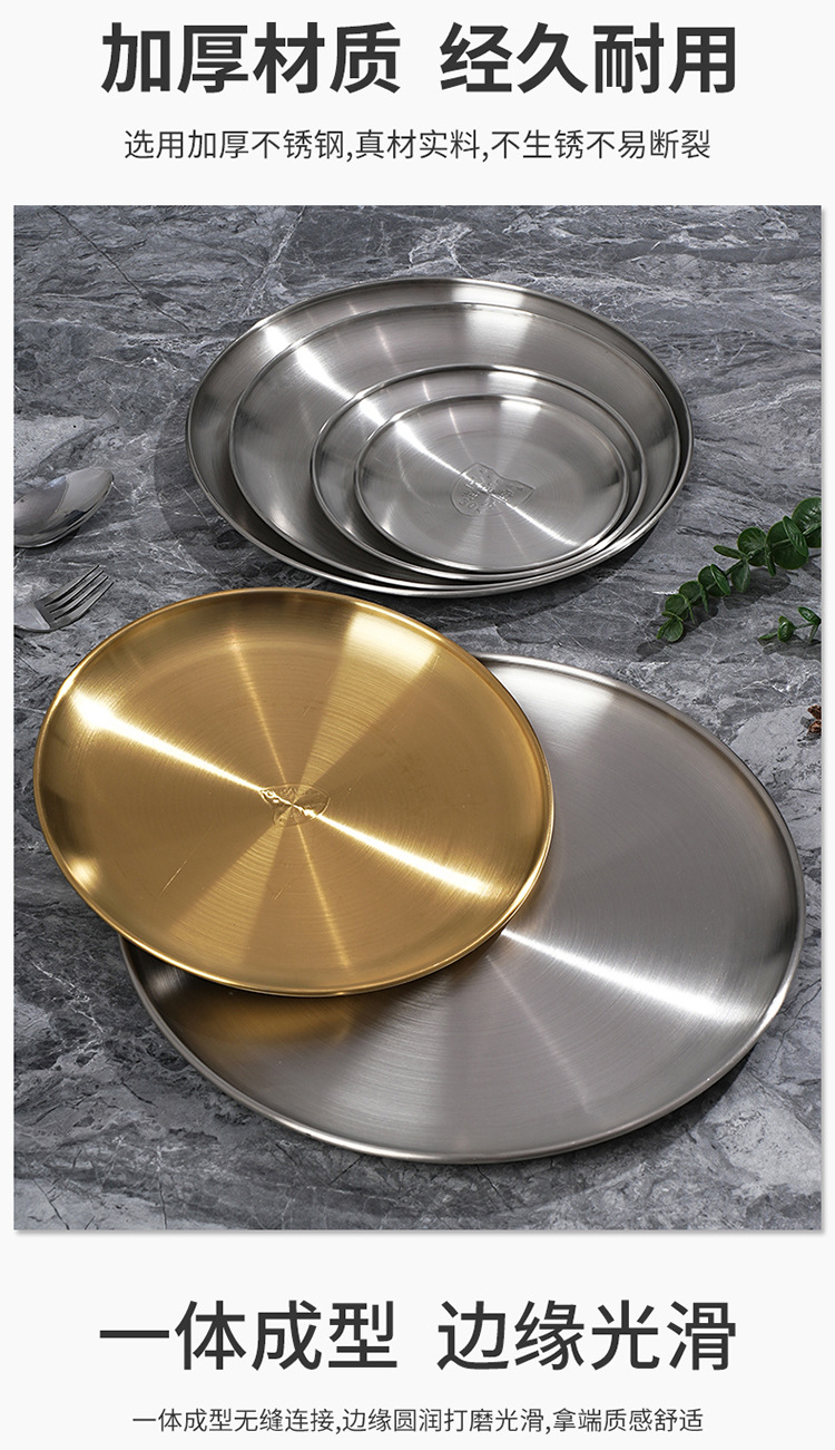 한국식 원형 바베큐 접시 304 스테인리스 원형 트레이 뼈받이 접시 스테이크 접시 과일 접시 장식 접시