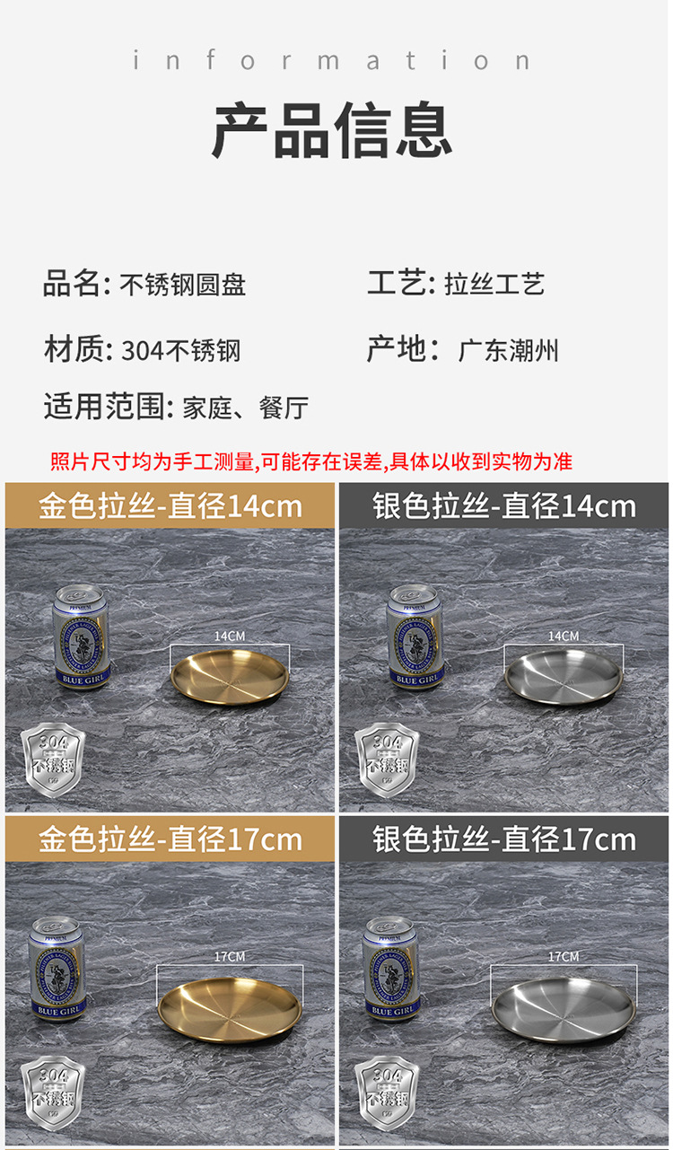 한국식 원형 바베큐 접시 304 스테인리스 원형 트레이 뼈받이 접시 스테이크 접시 과일 접시 장식 접시스토어 가기