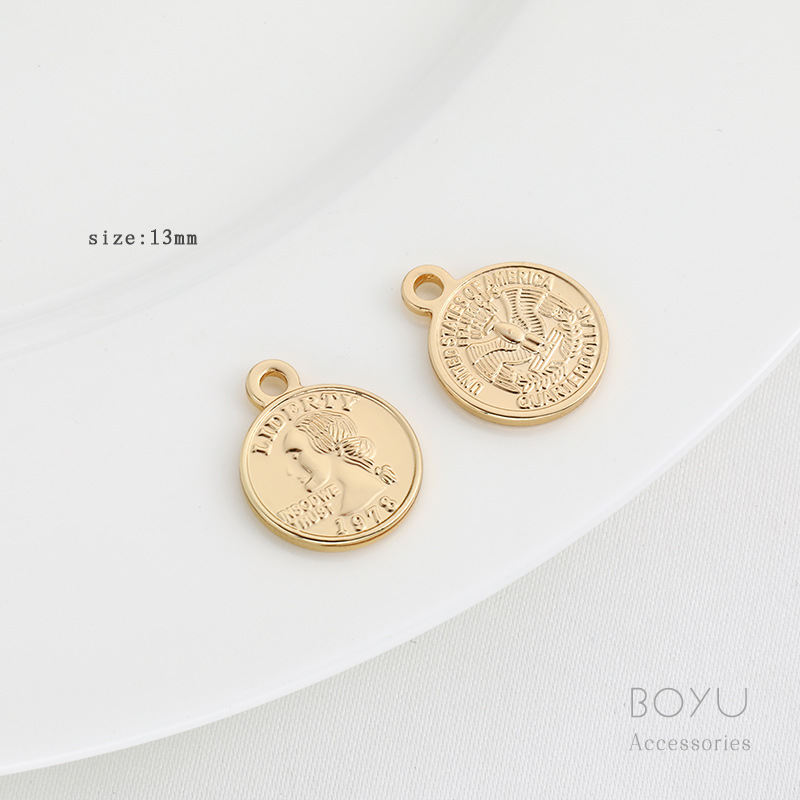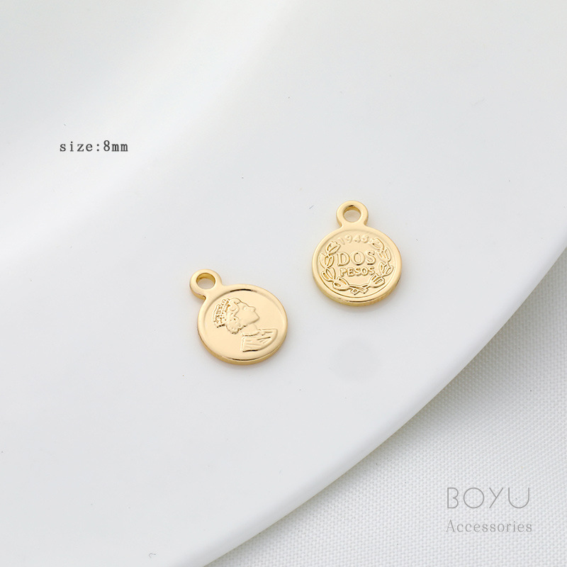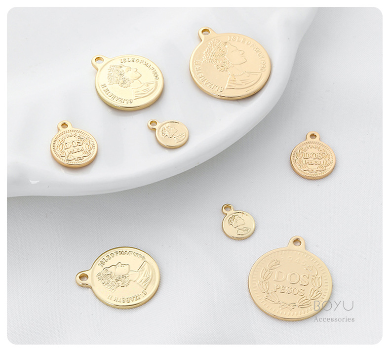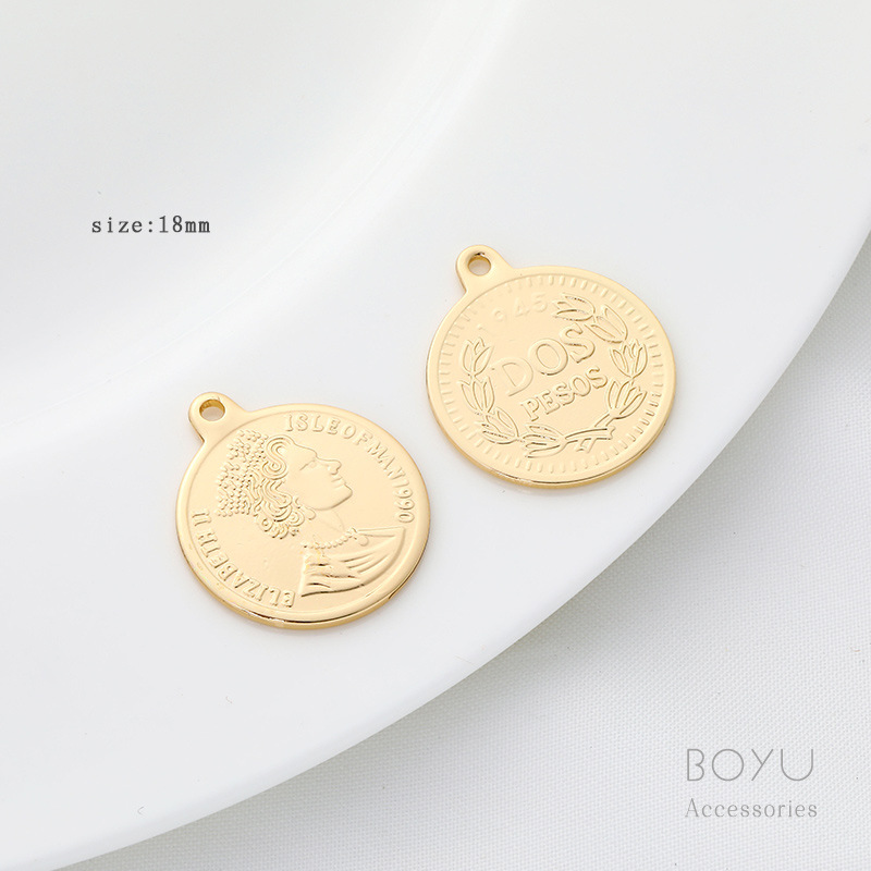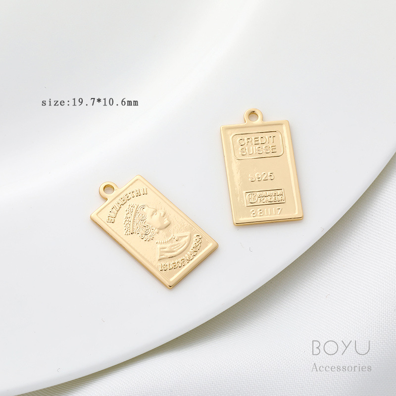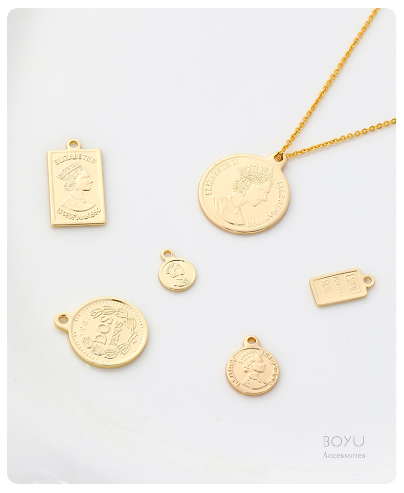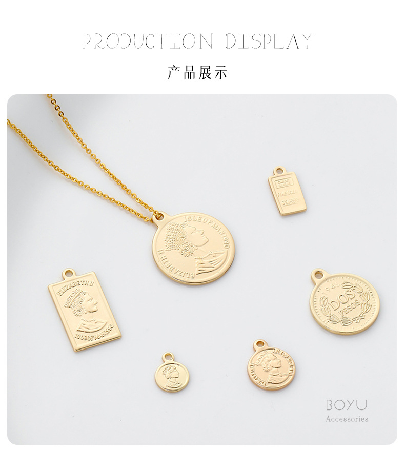 컬러 보존 14K 골드 캐스트 구리 동전 여왕의 머리 라운드 펜던트 수제 DIY 목걸이 직사각형 펜던트 태그 라인스토어 가기