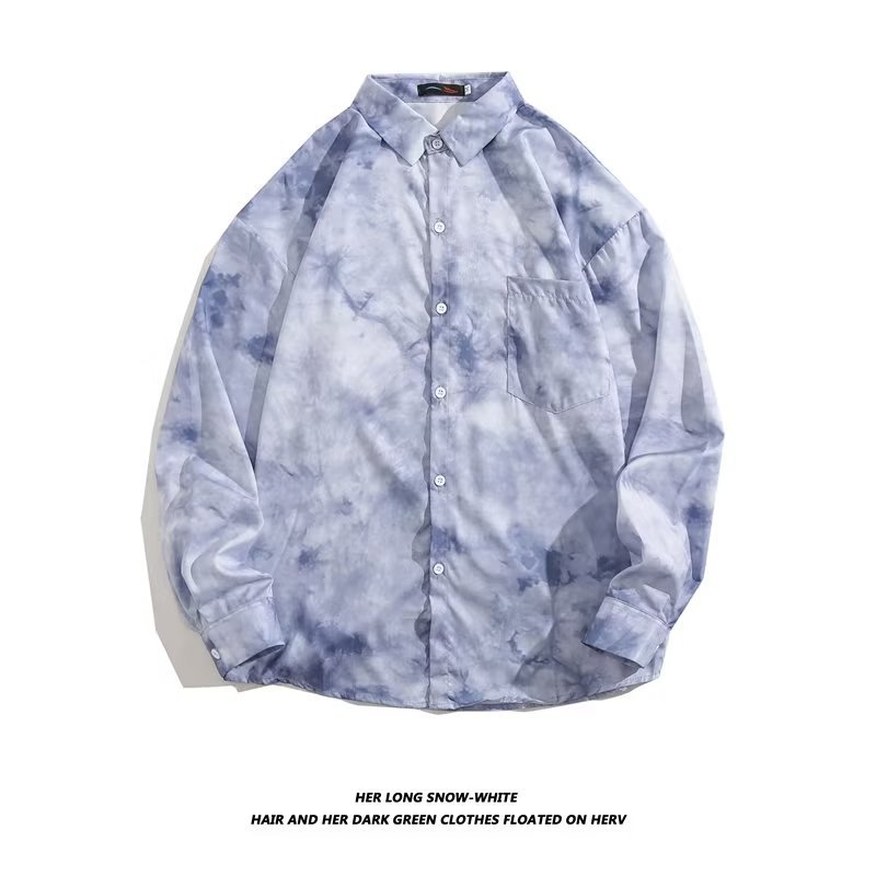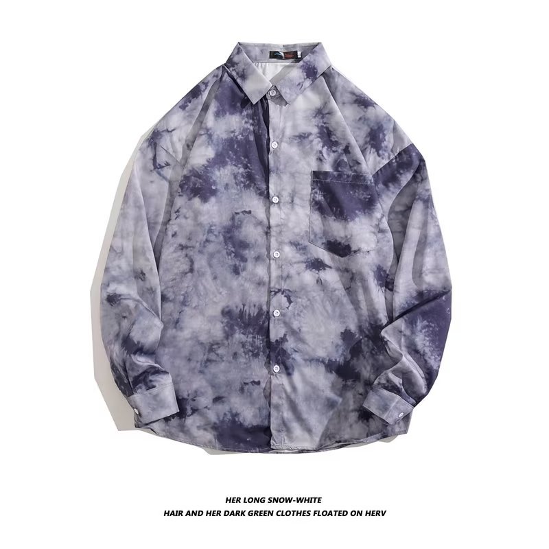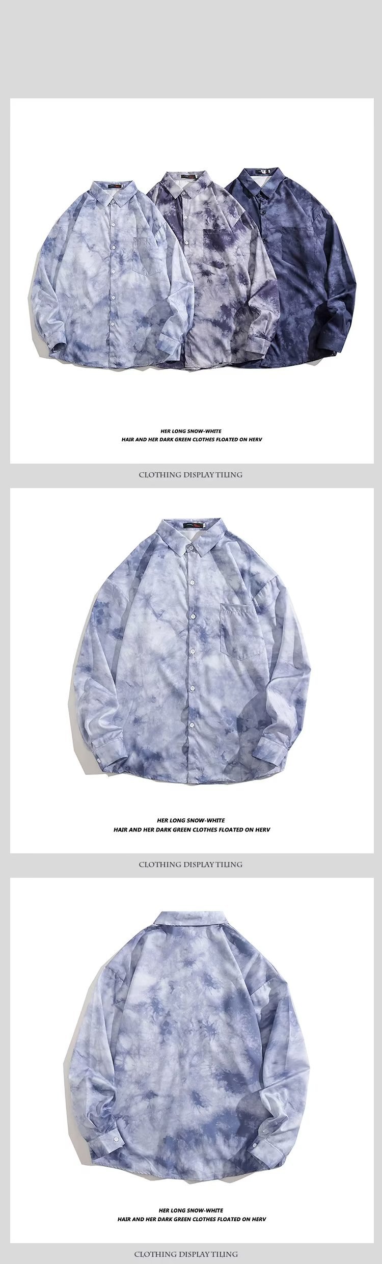 일본 패션 브랜드 짙은 넥타이 염색 셔츠 남성 미국 스트리트 힙합 트렌디 느슨한 잘 생긴 커플 긴팔 셔츠스토어 가기