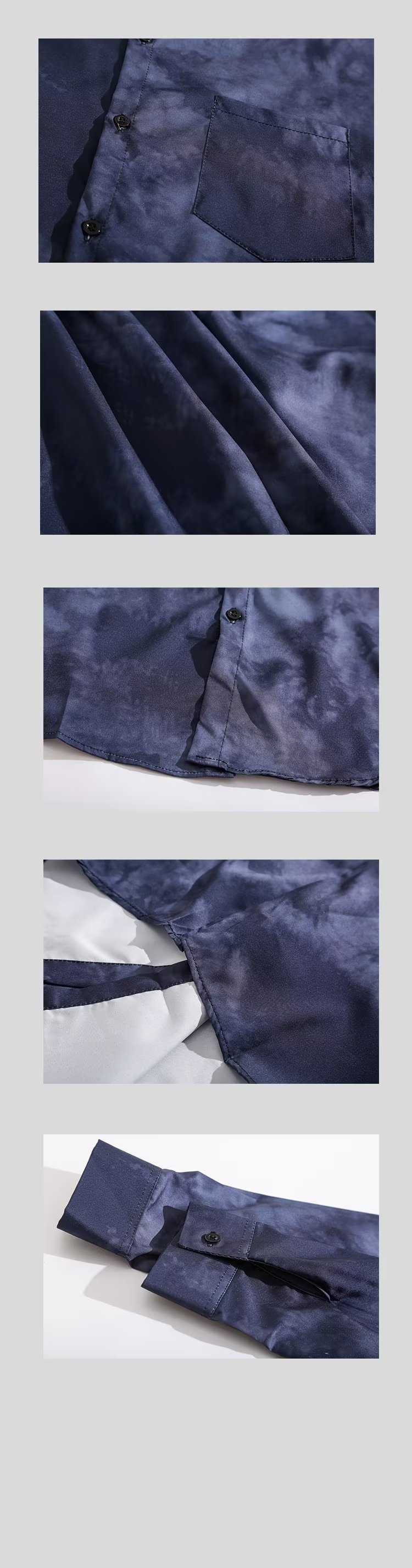 일본 패션 브랜드 짙은 넥타이 염색 셔츠 남성 미국 스트리트 힙합 트렌디 느슨한 잘 생긴 커플 긴팔 셔츠