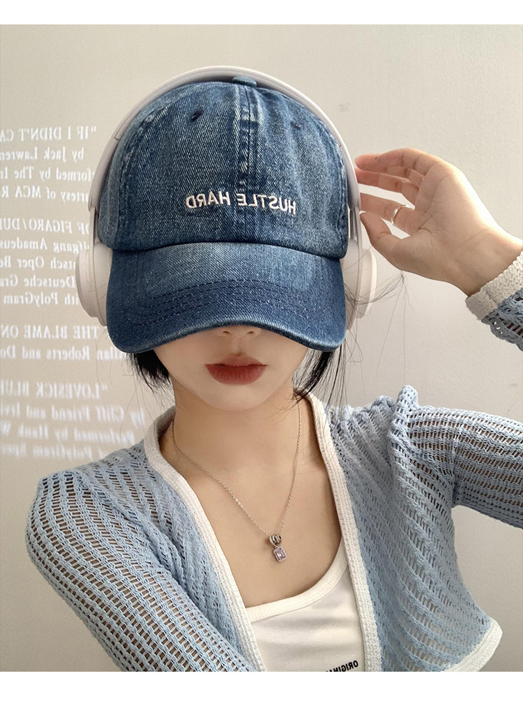 데님 자수 모자 여자의 여름 한국 스타일 보여주는 얼굴 작은 소프트 탑 야구 모자 큰 머리 둘레 차양 자외선 차단제 모자 유행스토어 가기