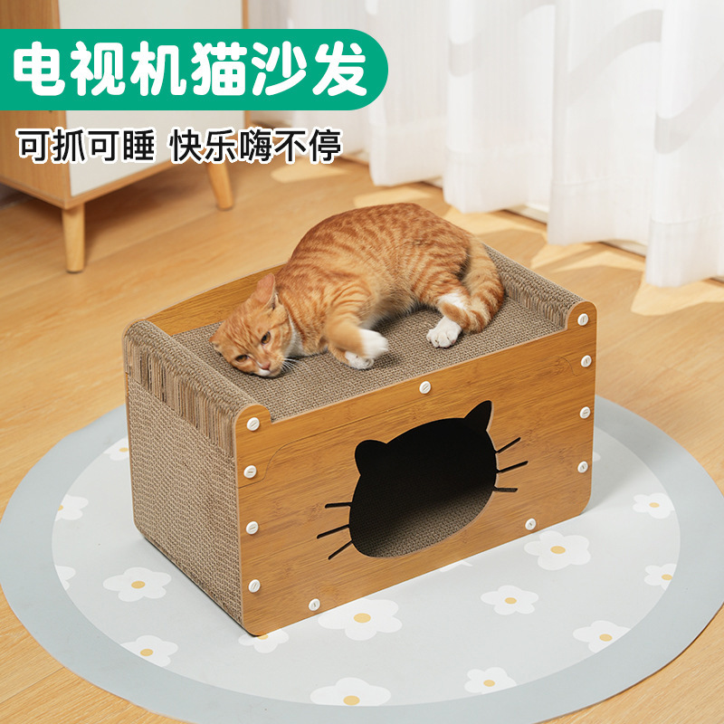 TV 소파 고양이 스크래치 보드 통합 내마모성 스크랩 프리 수직 2 층 골판지 고양이 둥지 나무 고양이 장난감스토어 가기