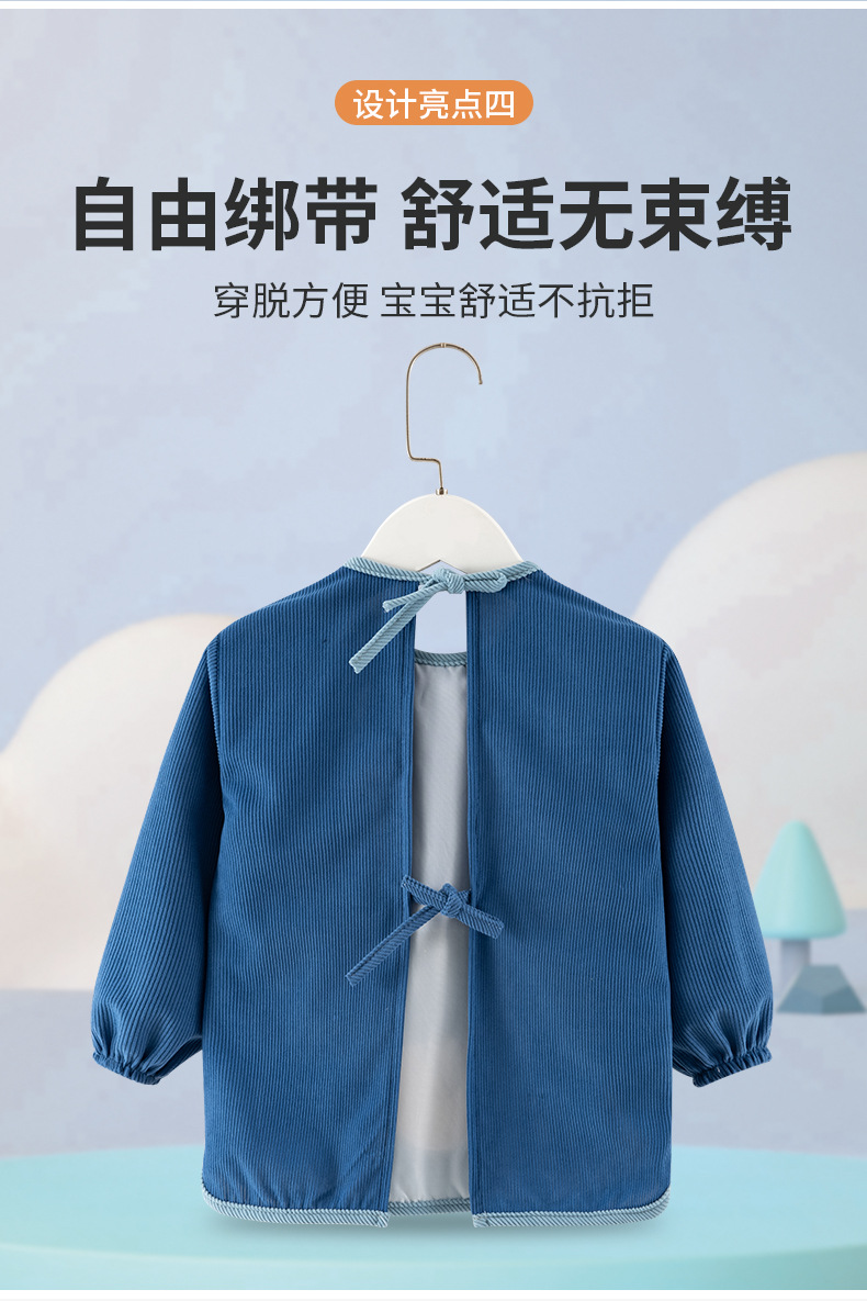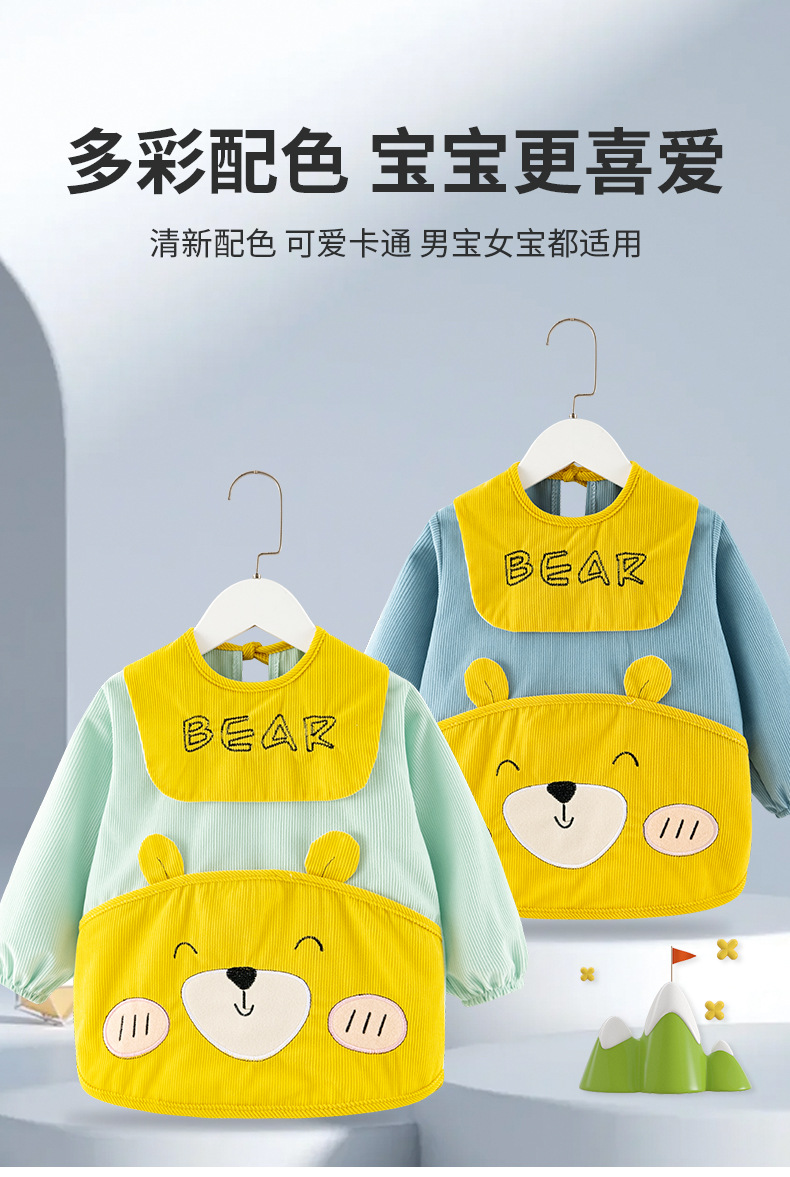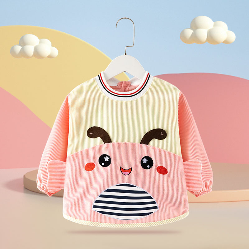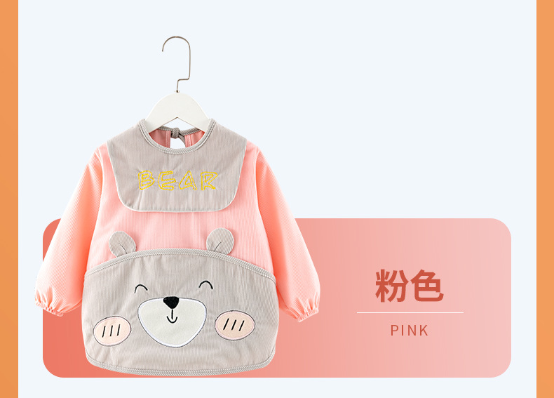가을과 겨울 폭발 크리스탈 벨벳 커버 옷 어린이 방수 안티 드레싱 아기 긴 소매 앞치마 아기 앞치마 포켓