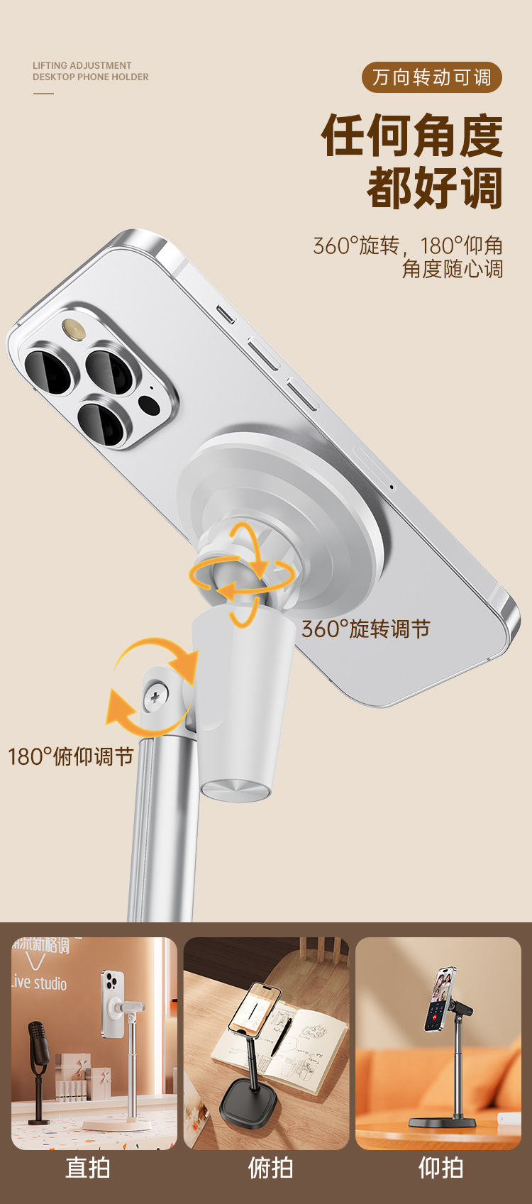 국경 휴대 전화 라이브 지원 데스크탑 수직 촬영 텔레스코픽 알루미늄 합금 회전 브래킷 게으른 자기 휴대 전화 브래킷