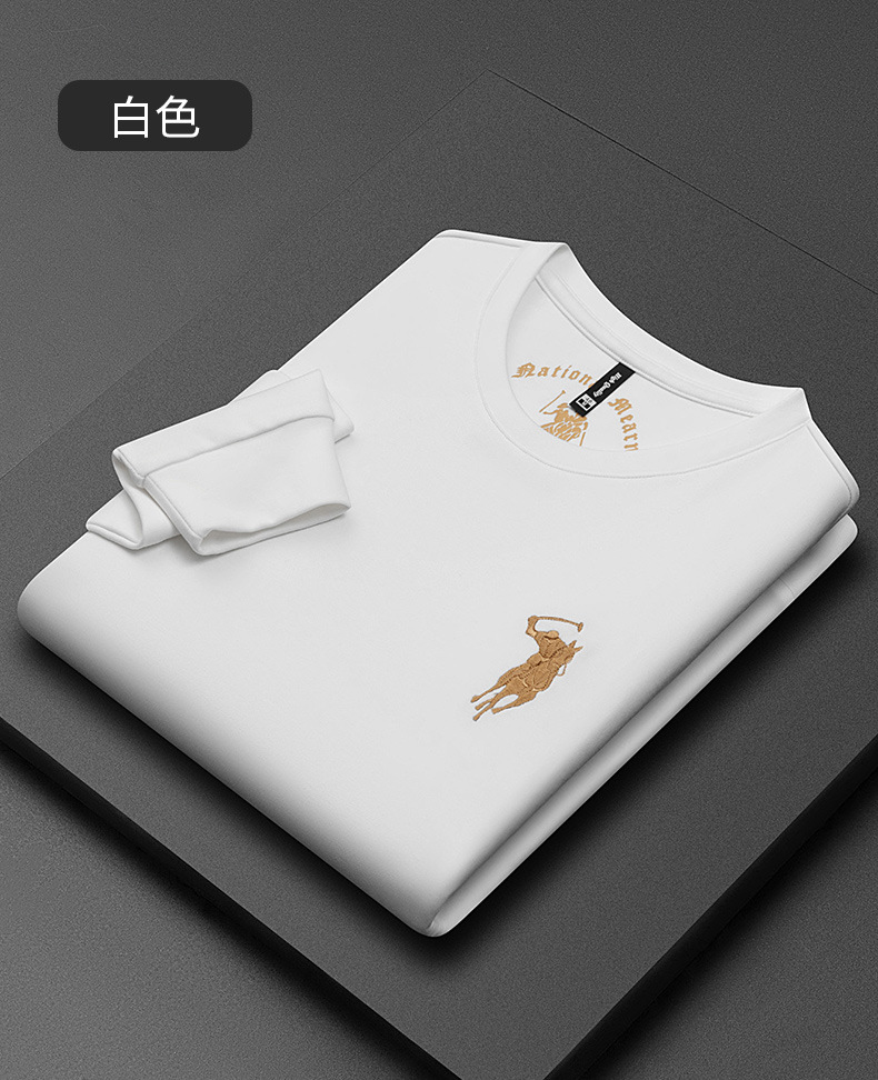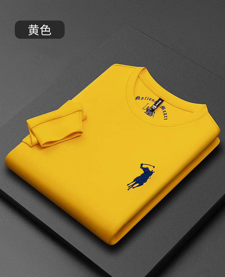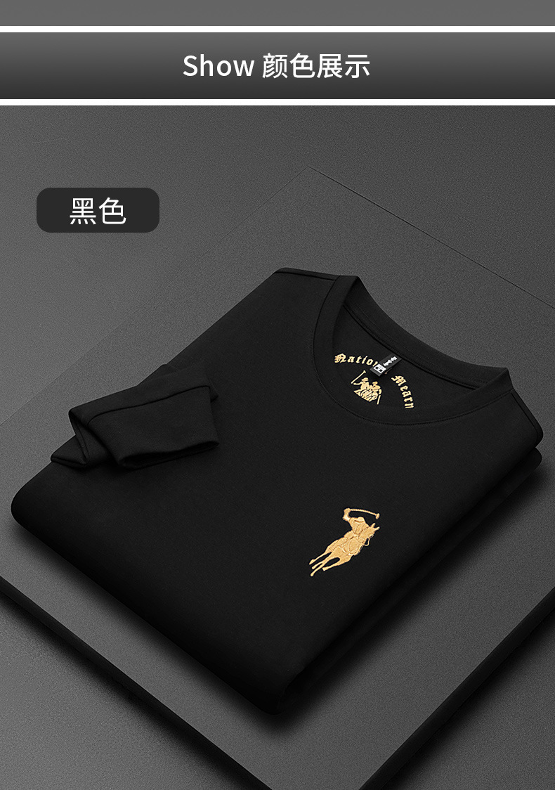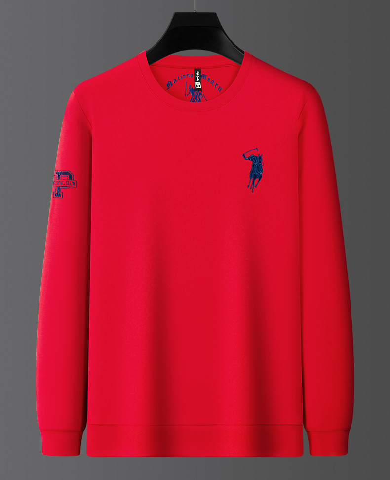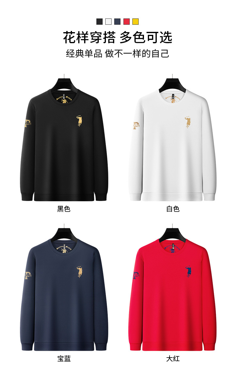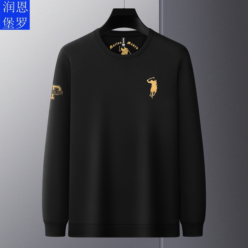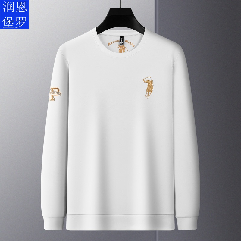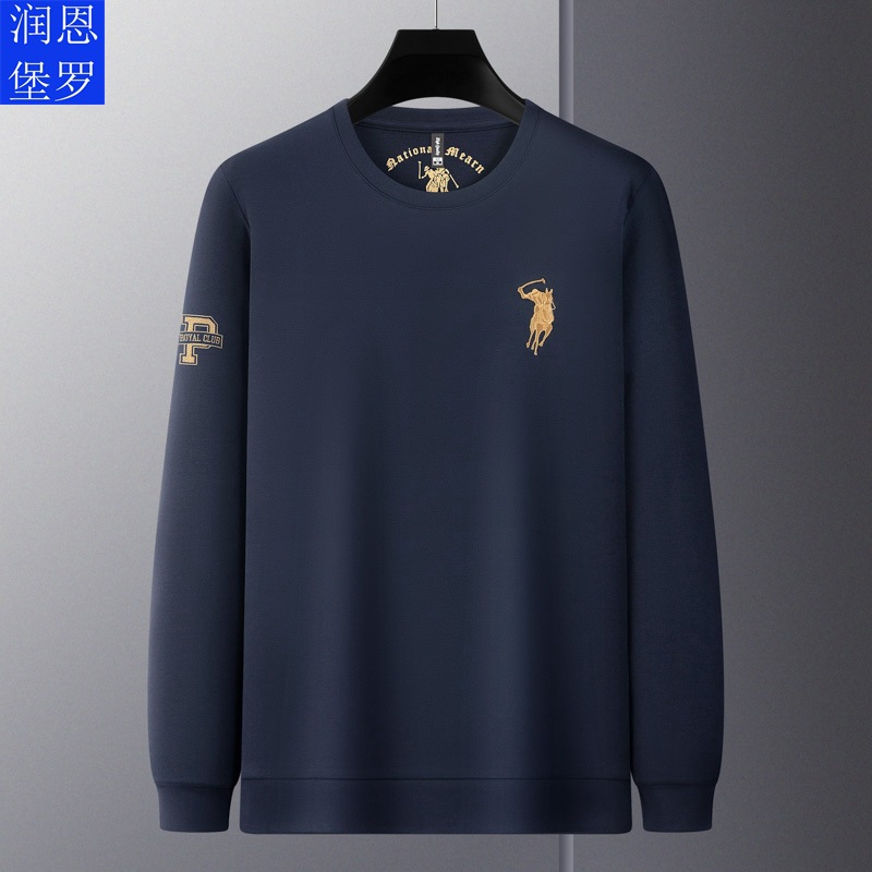 Runenboro 고급 스페이스 코튼 자수 크루 넥 긴팔 티셔츠 남성용 청년 및 중년 폴 퓨어 코튼 스웨터스토어 가기