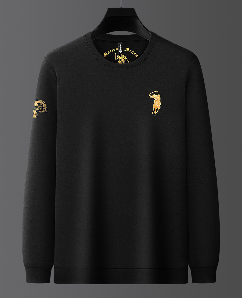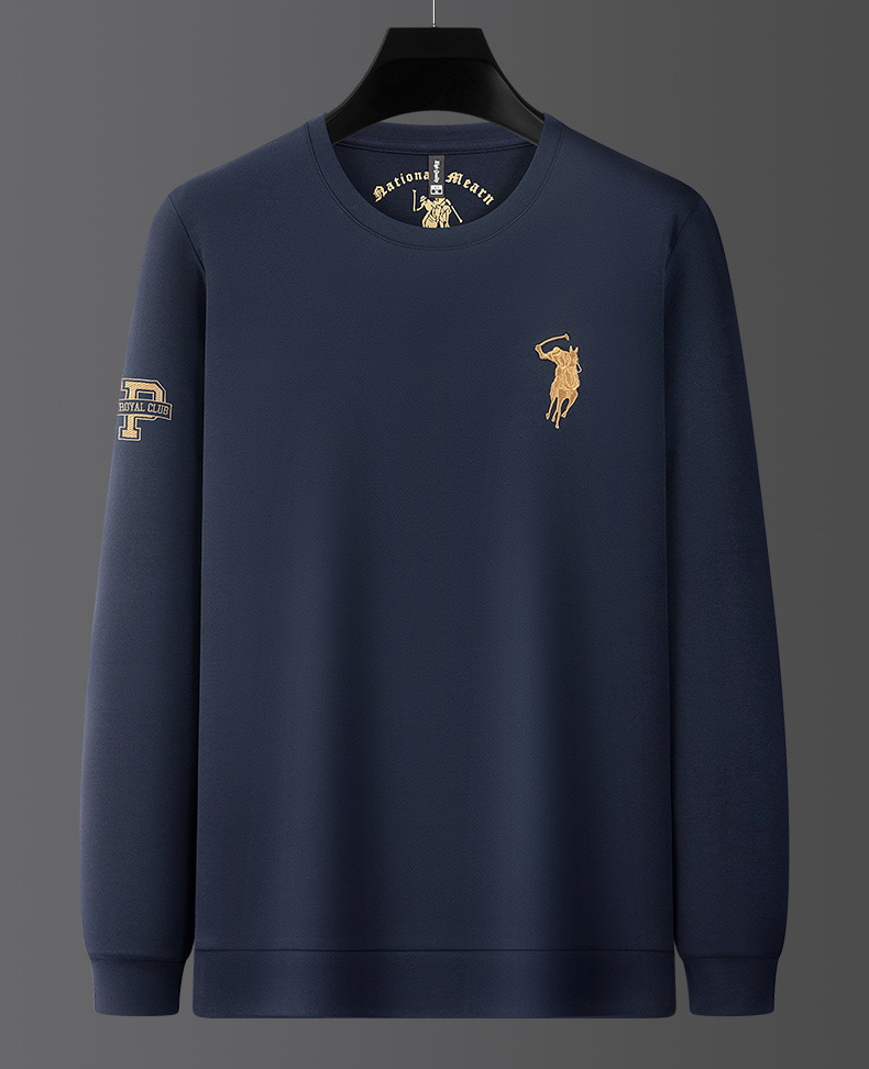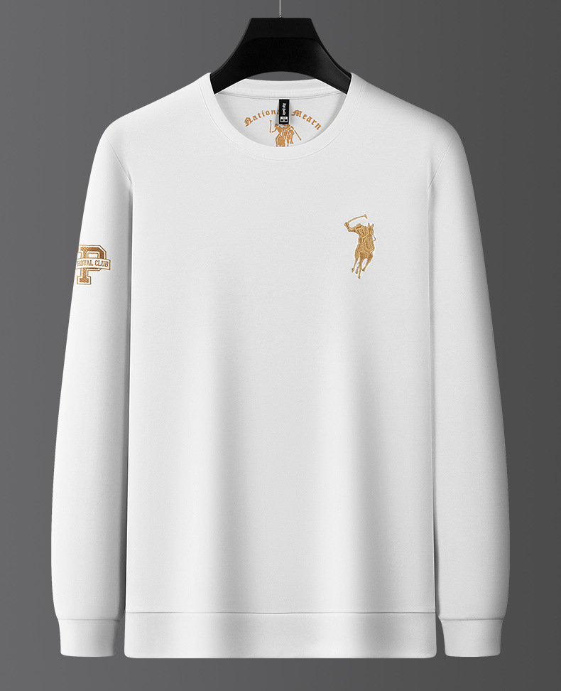 Runenboro 고급 스페이스 코튼 자수 크루 넥 긴팔 티셔츠 남성용 청년 및 중년 폴 퓨어 코튼 스웨터