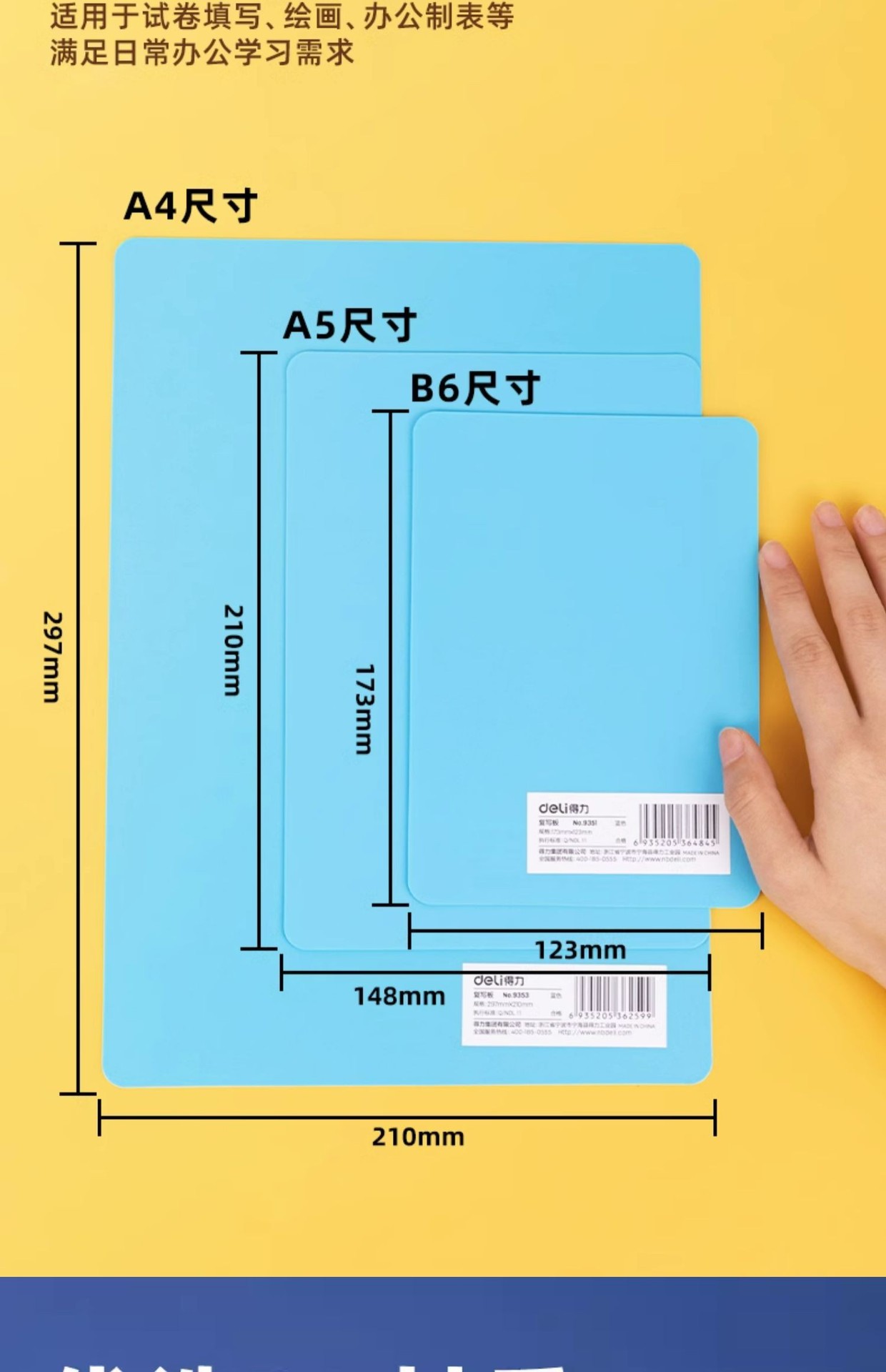 델리 A4 패드 초등학생 쓰기 플라스틱 보드 클립 유치원 벽돌 보드 a5 쓰기 보드 패드 종이 테스트 패드스토어 가기