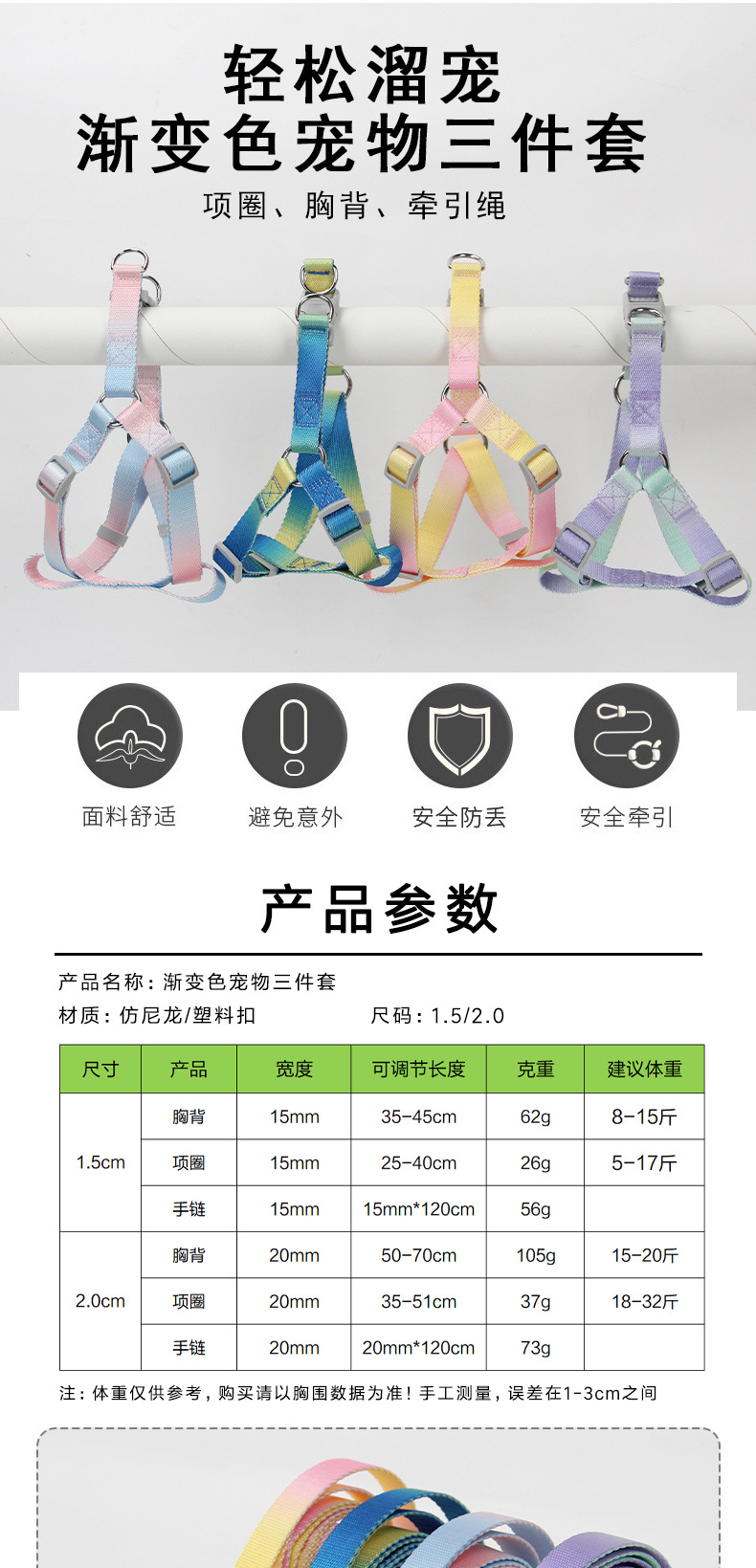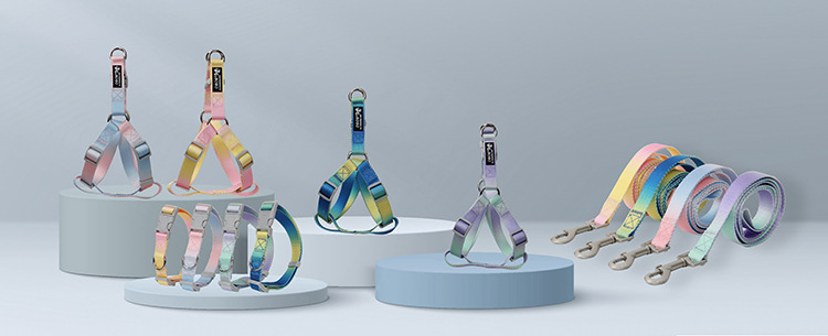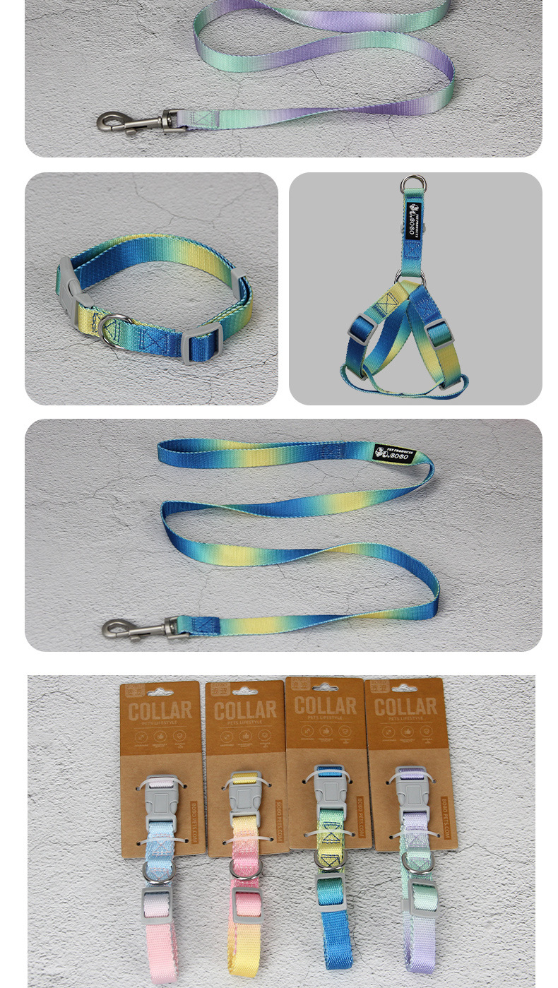 애완 동물 가죽 끈 그라데이션 비켜 개 가죽 끈 견인 세트 칼라 개 가슴 스트랩 중소 규모 개 체인