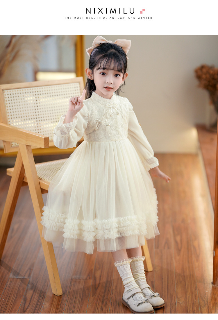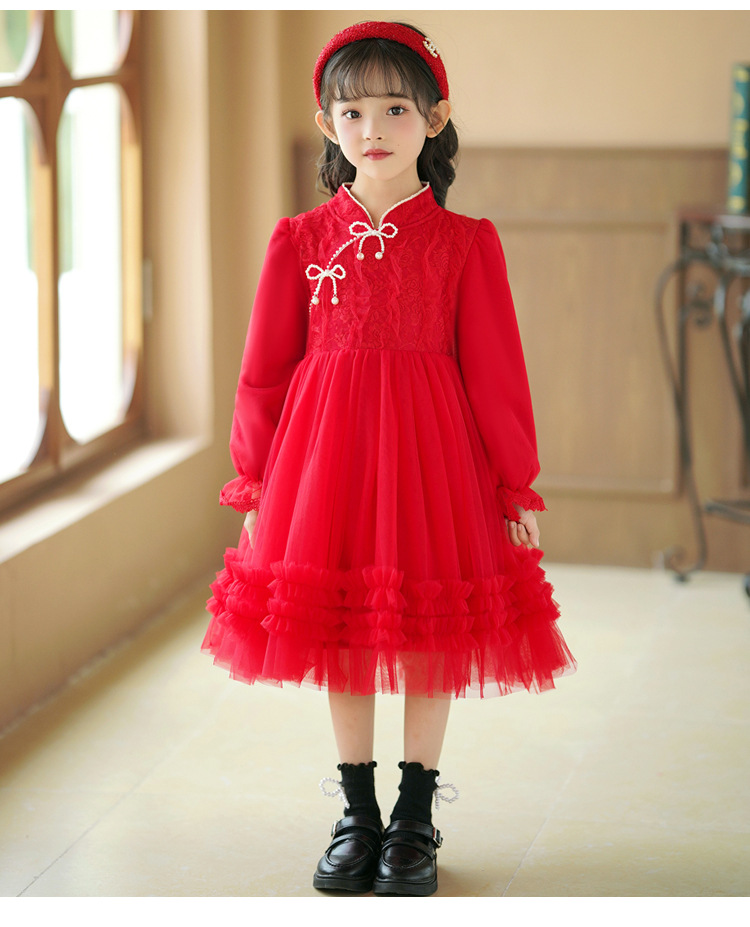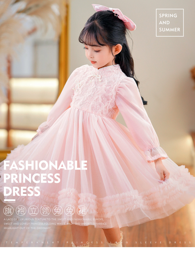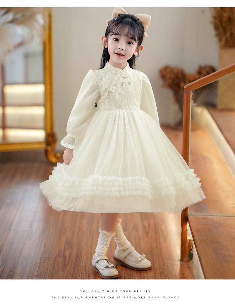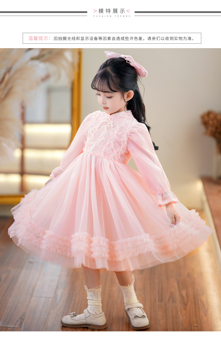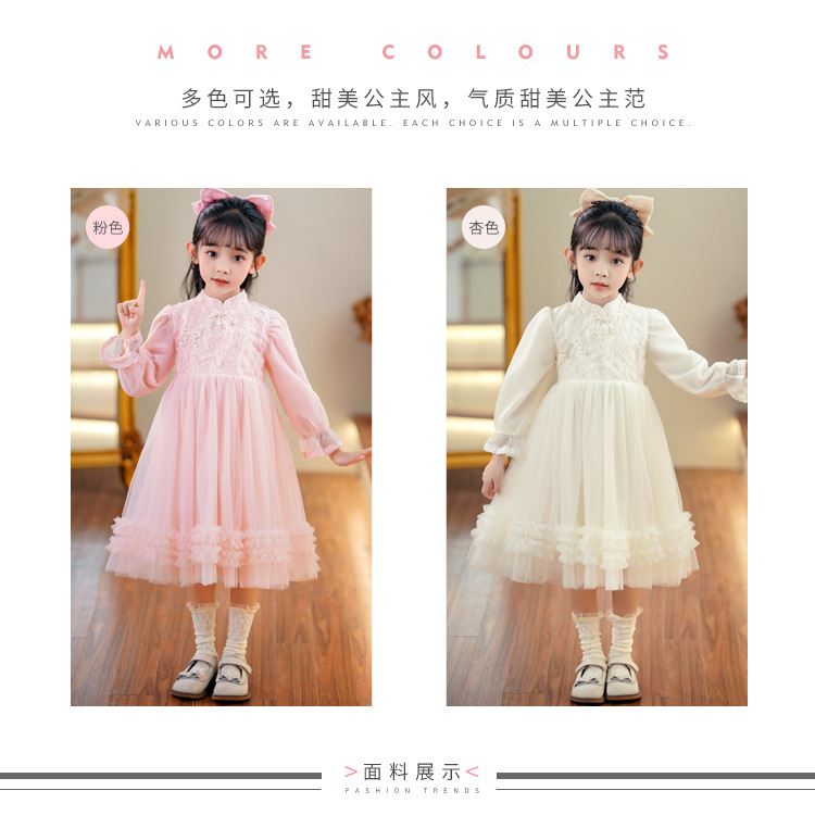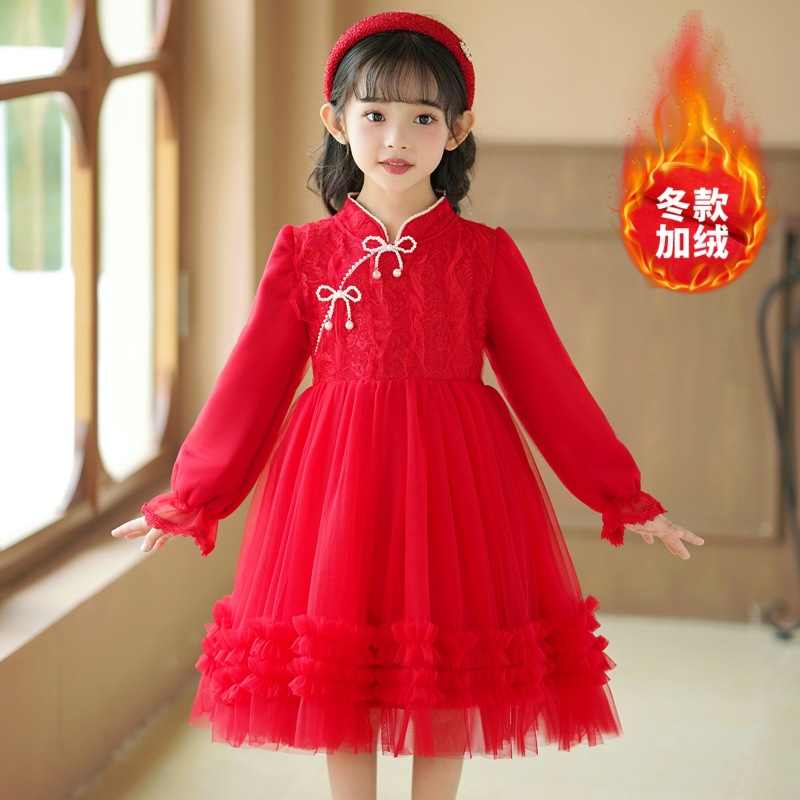 여아 드레스 가을 신상 중국풍 치파오 스타일 칼라 어린이 드레스 공주 드레스 여자아이용 플러스 벨벳 망사 드레스