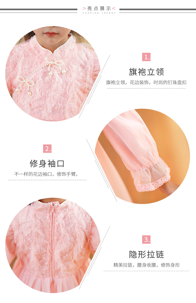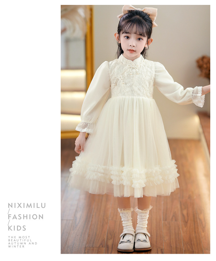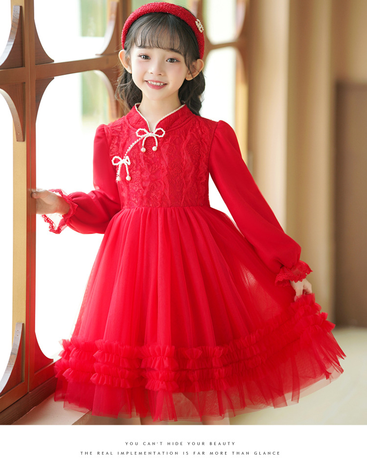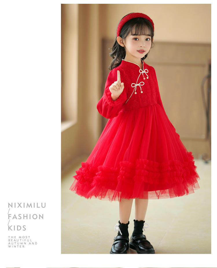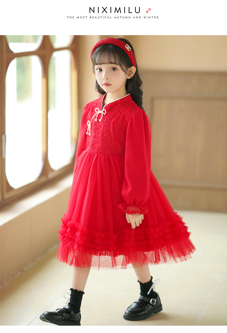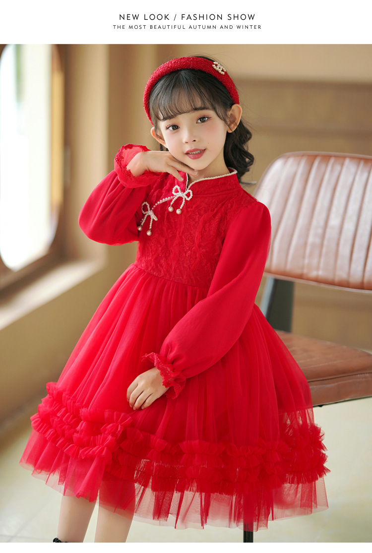 여아 드레스 가을 신상 중국풍 치파오 스타일 칼라 어린이 드레스 공주 드레스 여자아이용 플러스 벨벳 망사 드레스