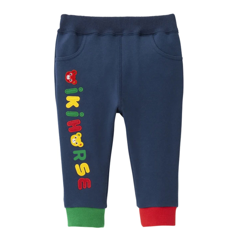 春秋新款男女童卡通字母熊兔刺绣休闲长裤