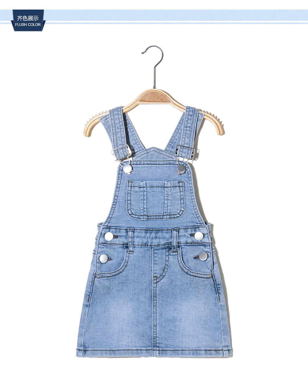 어린이 스트랩 스커트 도매 1-14 세 데님 스커트 사계절 어린이 착용 스트레치 데님 스트랩 스커트스토어 가기