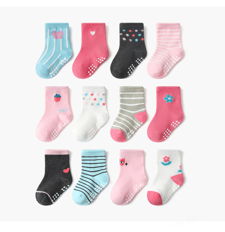아이들의 기본 아마존 새로운 소녀 소년 면 양말 만화 어린이 양말 미끄럼 방지 바닥 양말