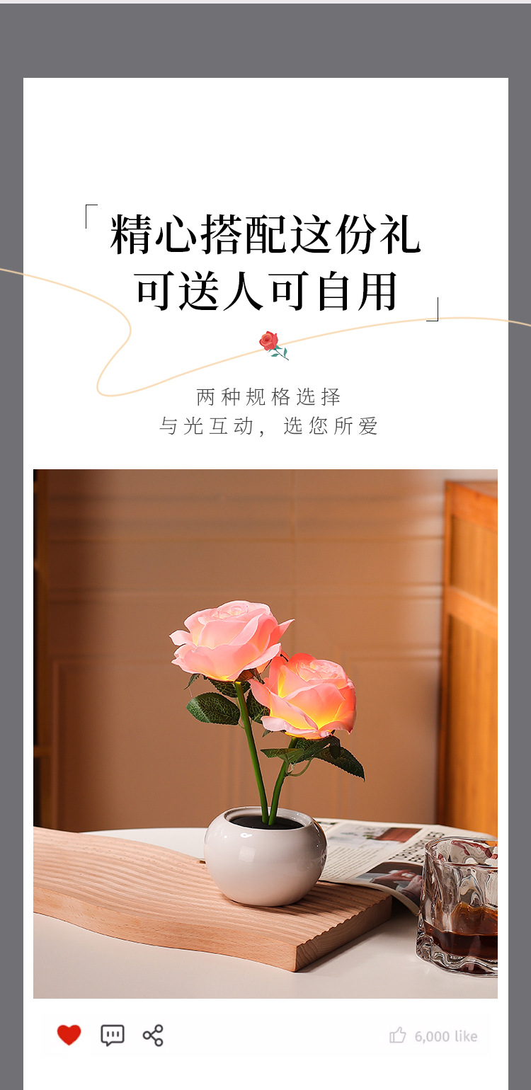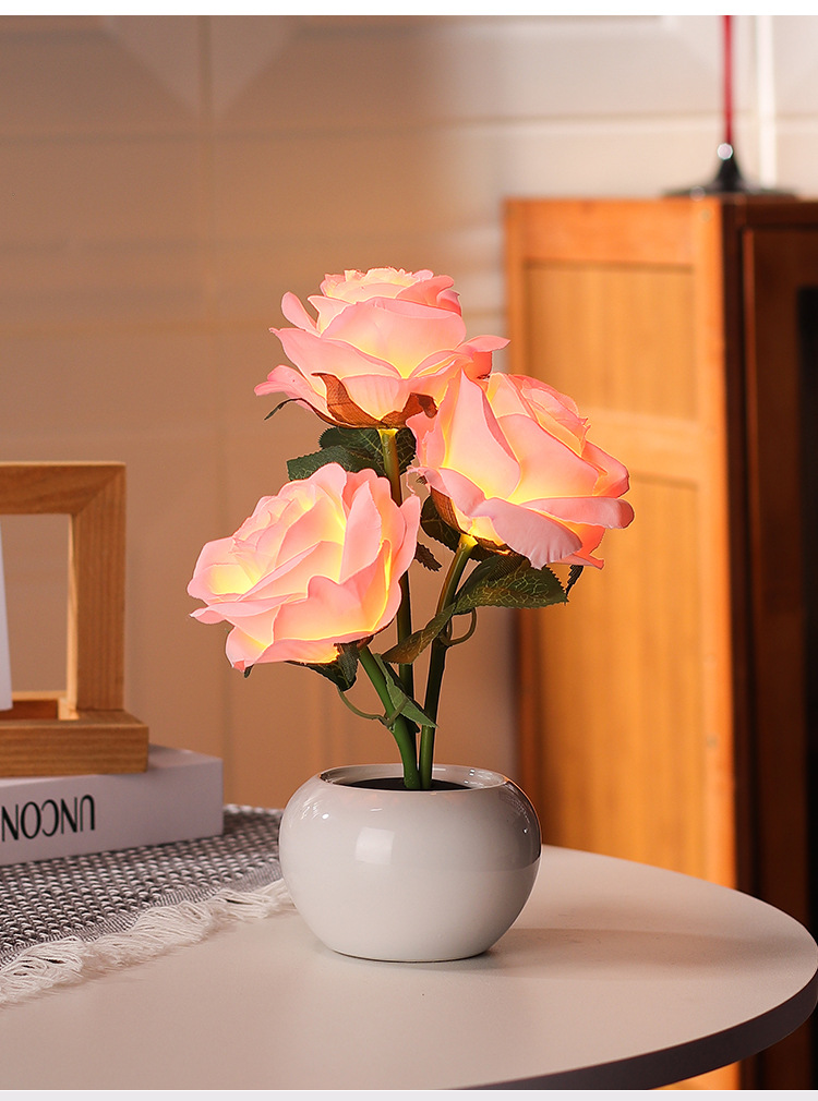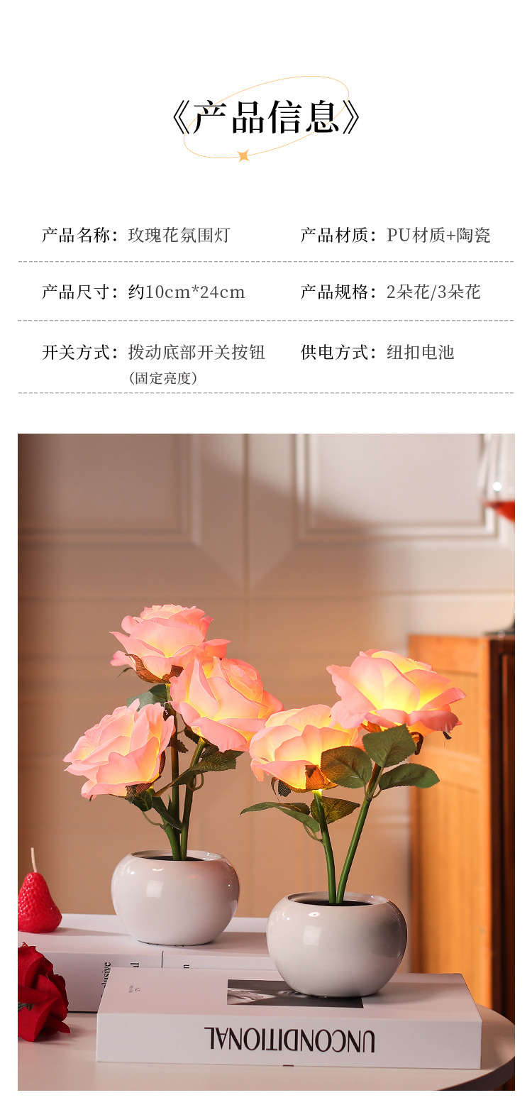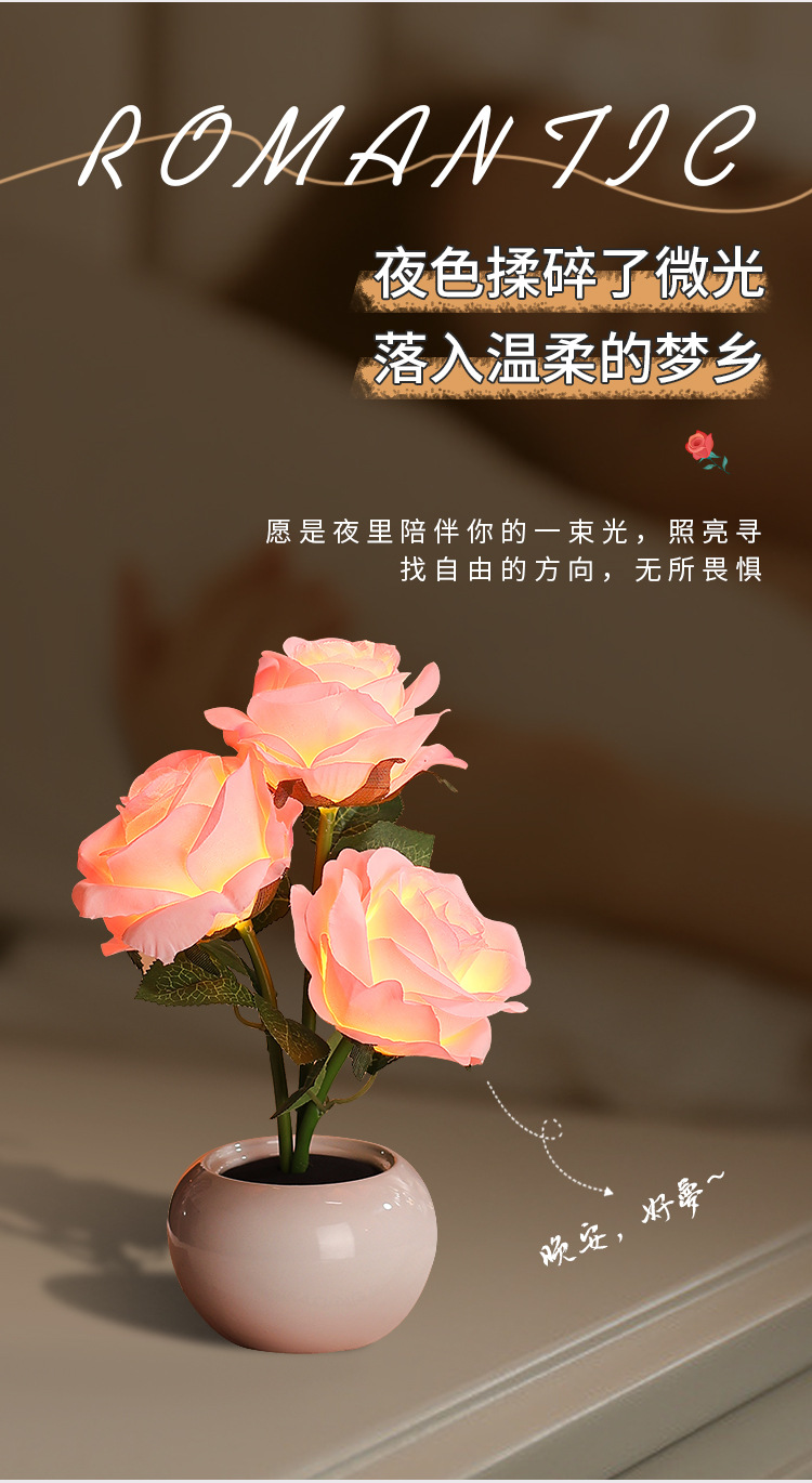 장미 영원한 꽃 야간 조명 침실 수면 분위기 침대 옆 창조적 인 장식품 소녀를위한 선물 인터넷 연예인 세라믹 램프