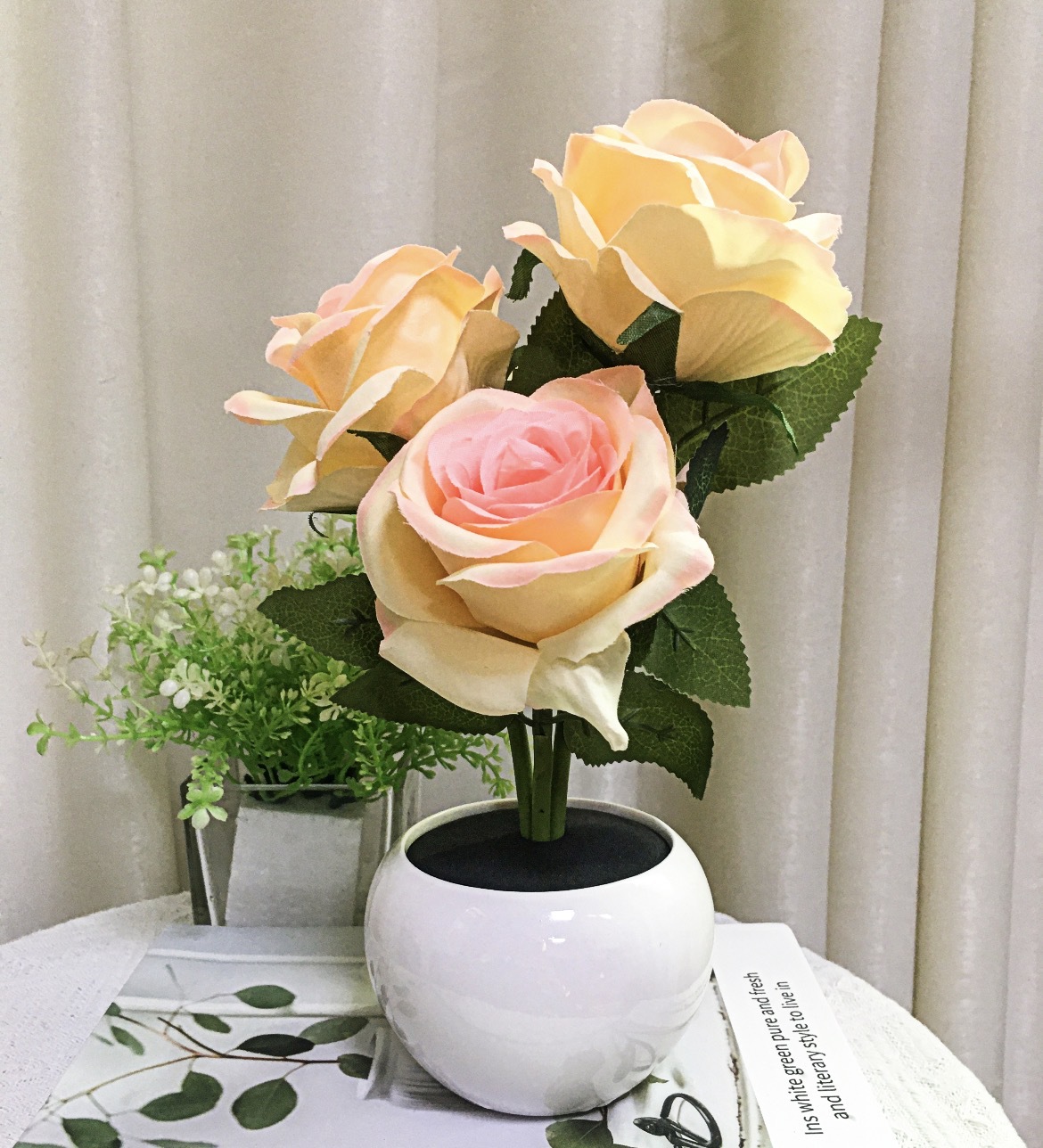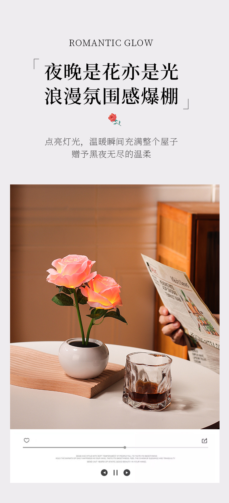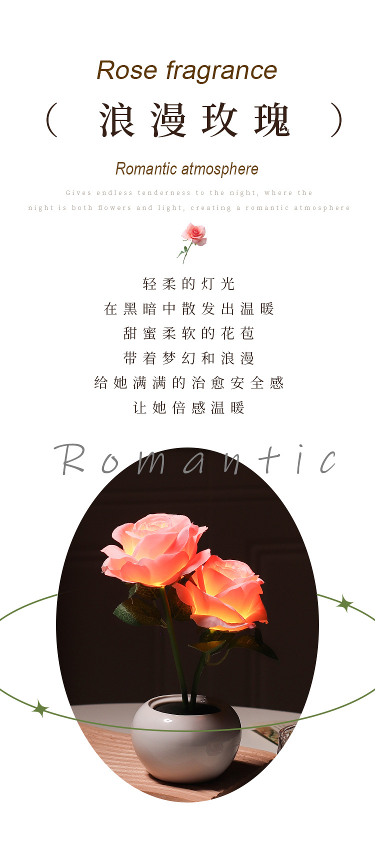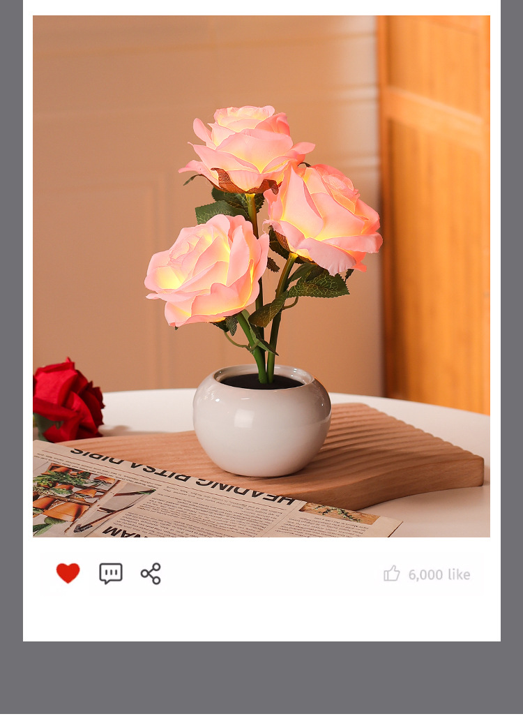장미 영원한 꽃 야간 조명 침실 수면 분위기 침대 옆 창조적 인 장식품 소녀를위한 선물 인터넷 연예인 세라믹 램프