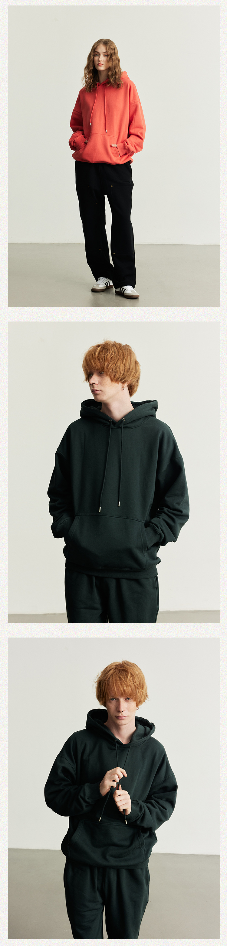 UNF 380G 기술 보온 벨벳 헤비웨이트 풀오버 스웨트셔츠 단색 플러스 벨벳 후드 스웨트셔츠 남성용 2024 가을 겨울 신상