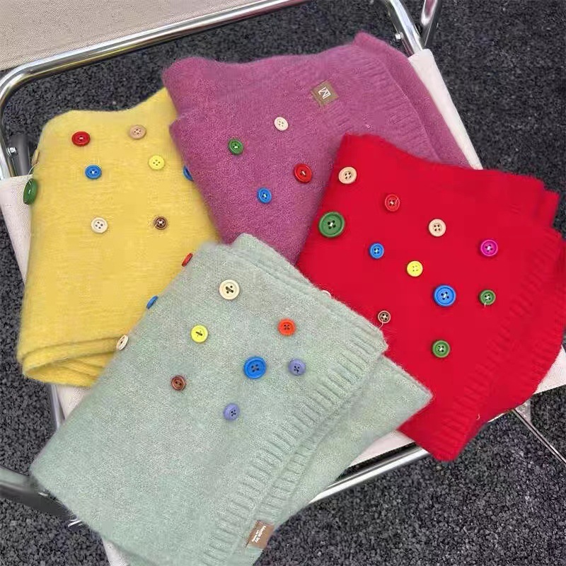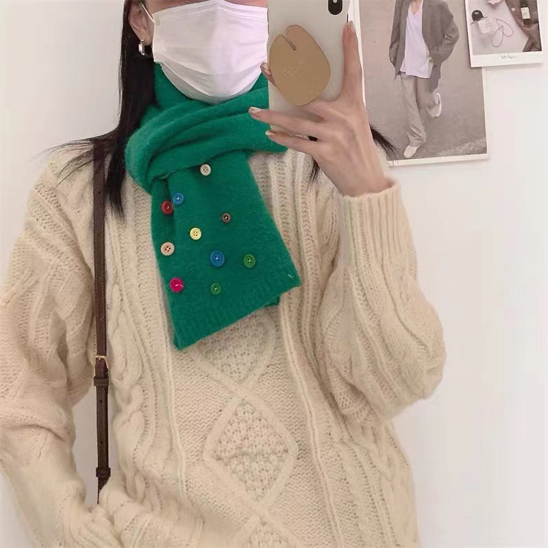 소프트 ~ 컬러 버튼 캔디 컬러 두꺼운 스카프 여성 가을과 겨울 한국 스타일 학생 따뜻한 모든 매치 스카프 패션스토어 가기