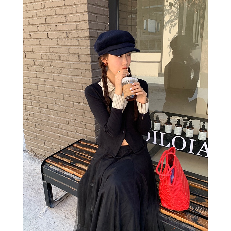 [Ge Ming] 여성용 디자인 가짜 투피스 스웨터 2025 가을 신작 카디건 여성용 긴팔 탑 X1790