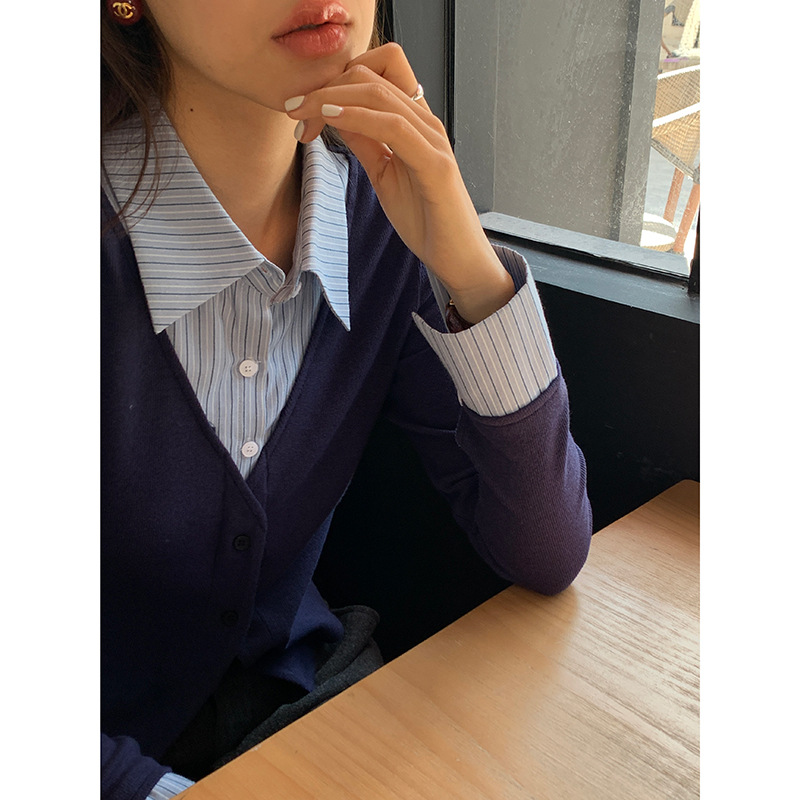 [Ge Ming] 여성용 디자인 가짜 투피스 스웨터 2025 가을 신작 카디건 여성용 긴팔 탑 X1790스토어 가기