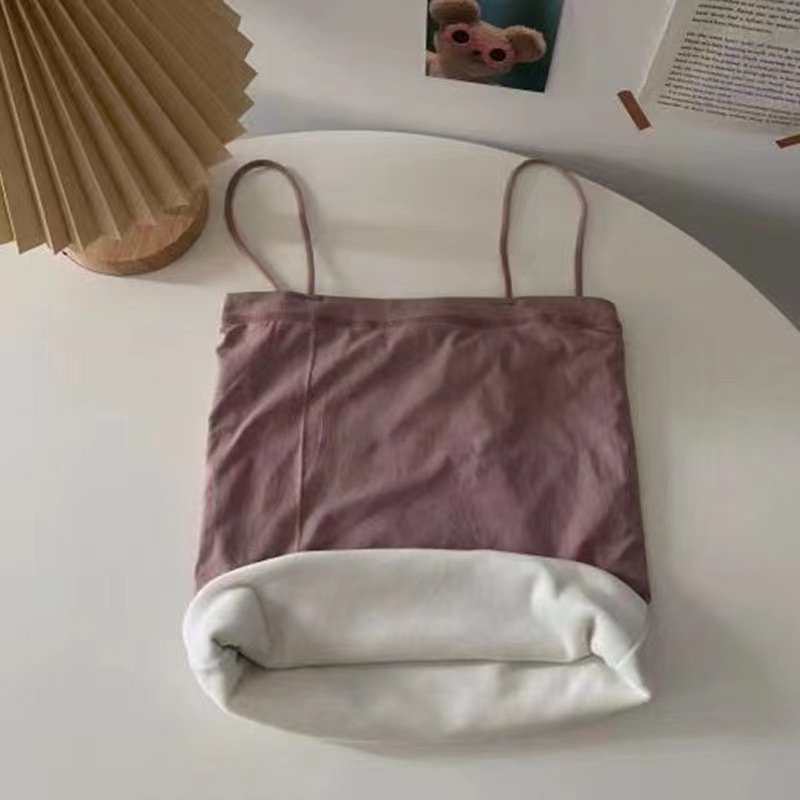秋冬季保暖背心纯色加绒加厚修身百搭美背吊带一字领打底抹胸女