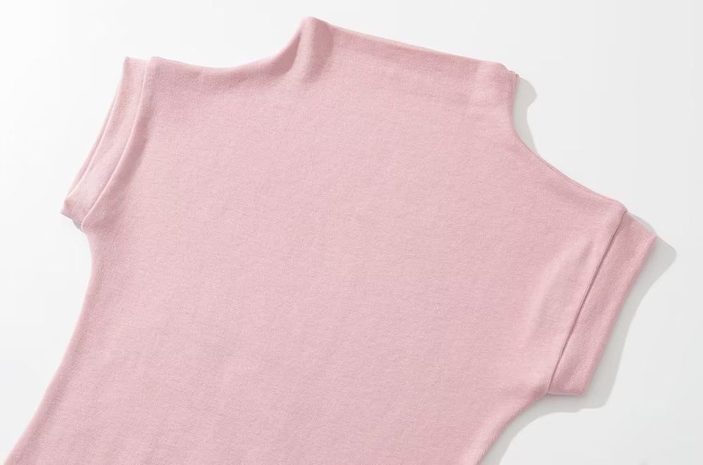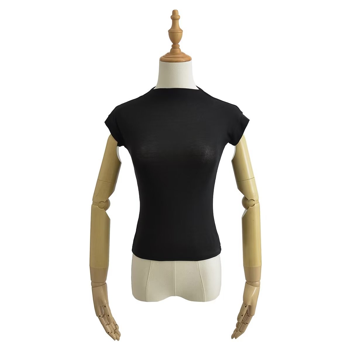 유럽과 미국 스타일 여름 간단한 하이 넥 하프 슬리브 탄성 타이트베이스 티셔츠 단색 타이트 탑 쇼트스토어 가기