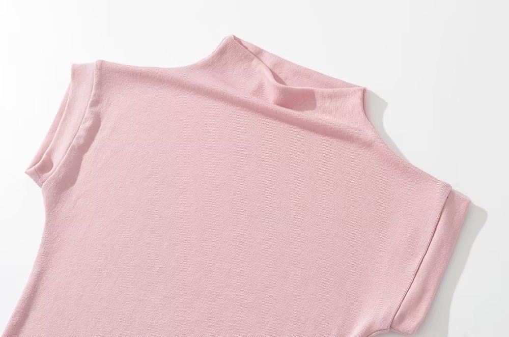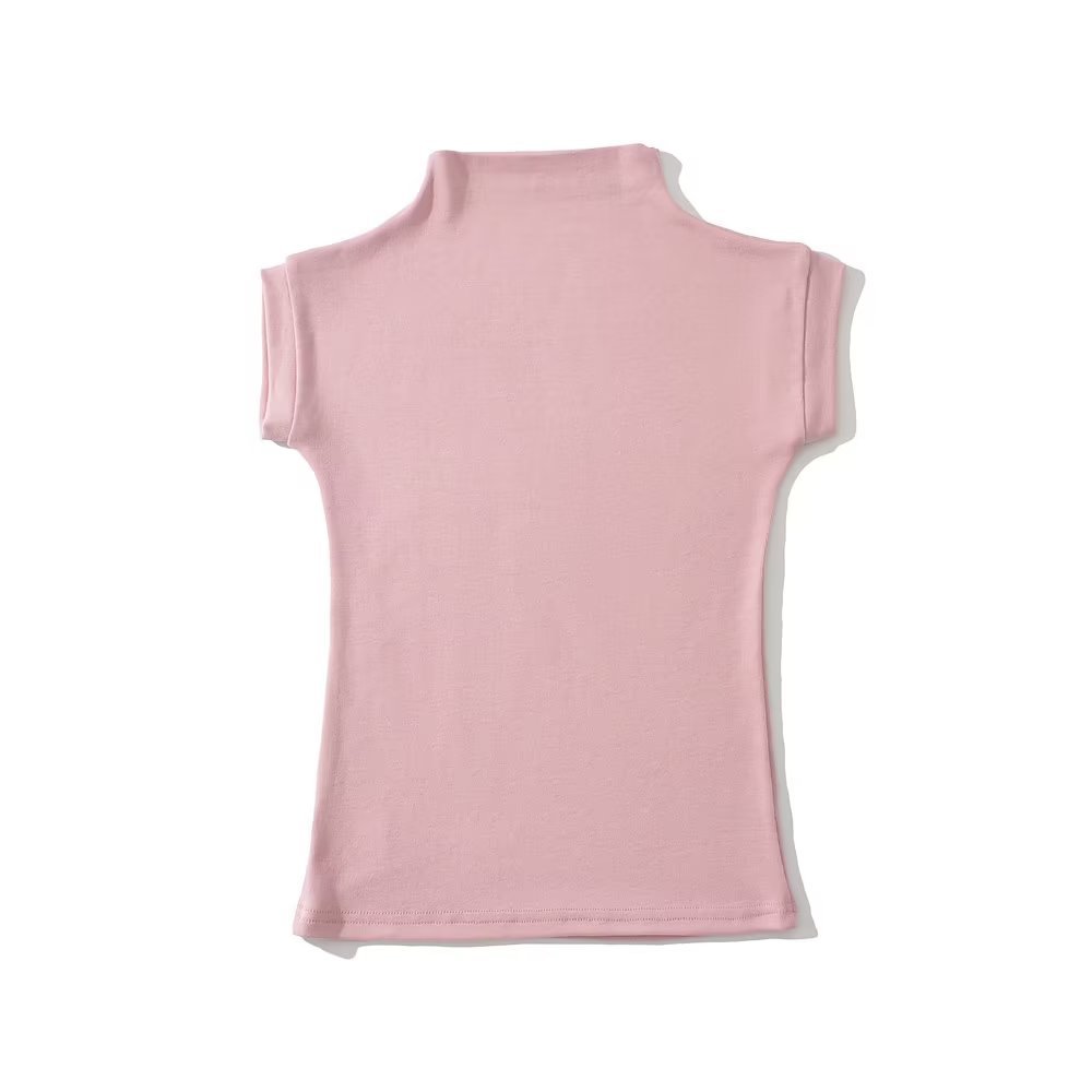 유럽과 미국 스타일 여름 간단한 하이 넥 하프 슬리브 탄성 타이트베이스 티셔츠 단색 타이트 탑 쇼트