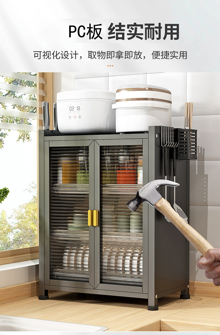 • 60cm 확장 모델] 2층 방진 찬장 + 액세서리 풀세트(블랙) 철판 모델